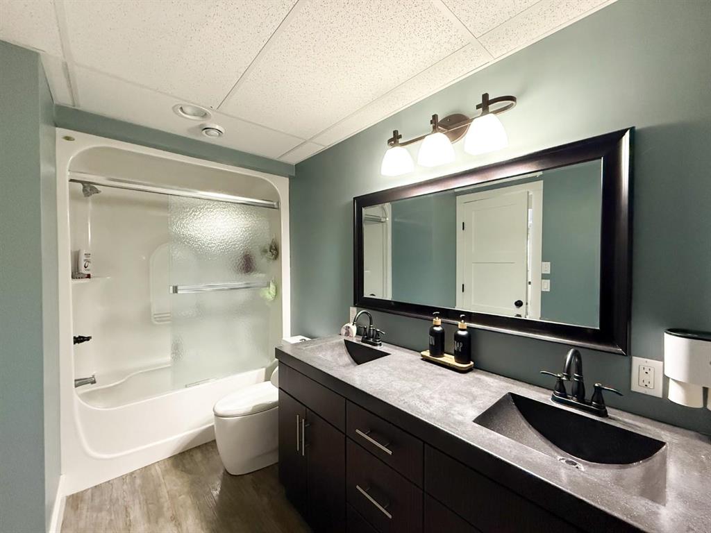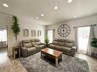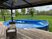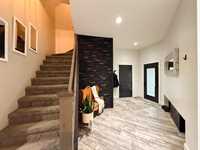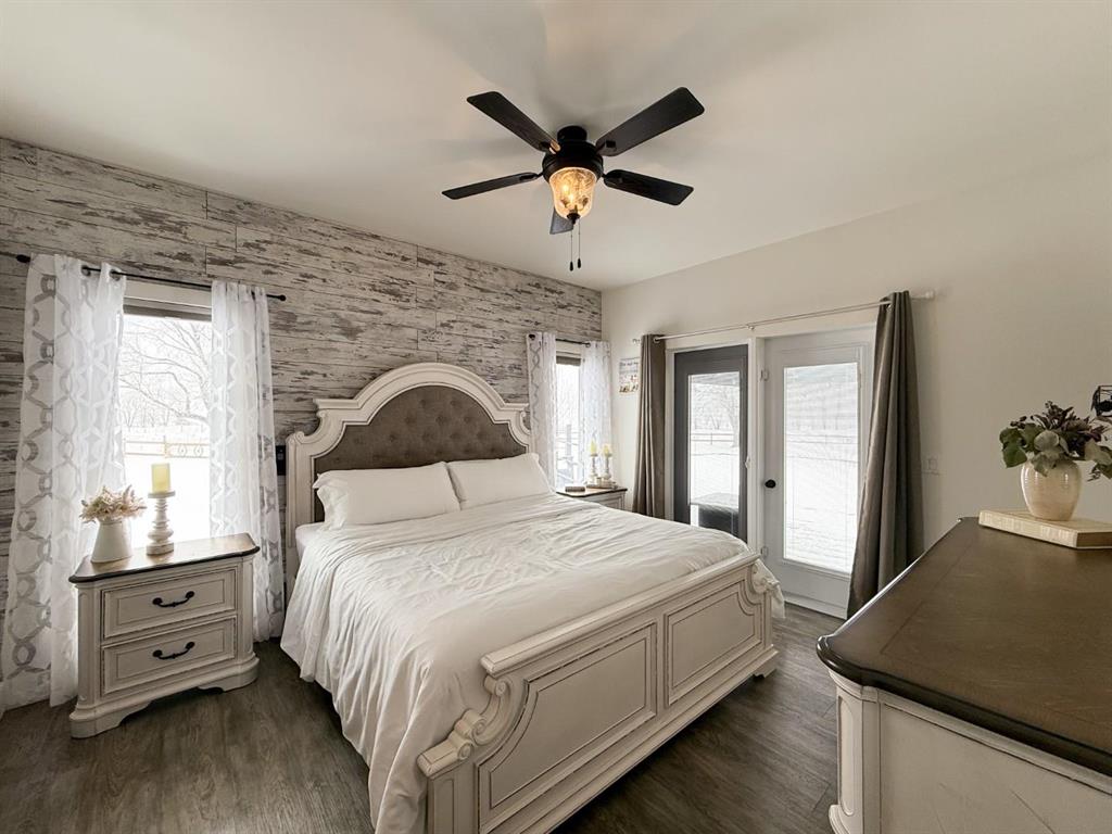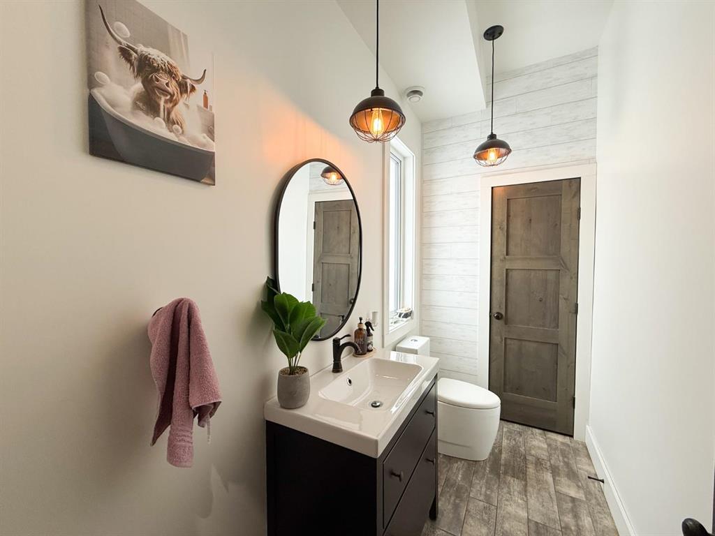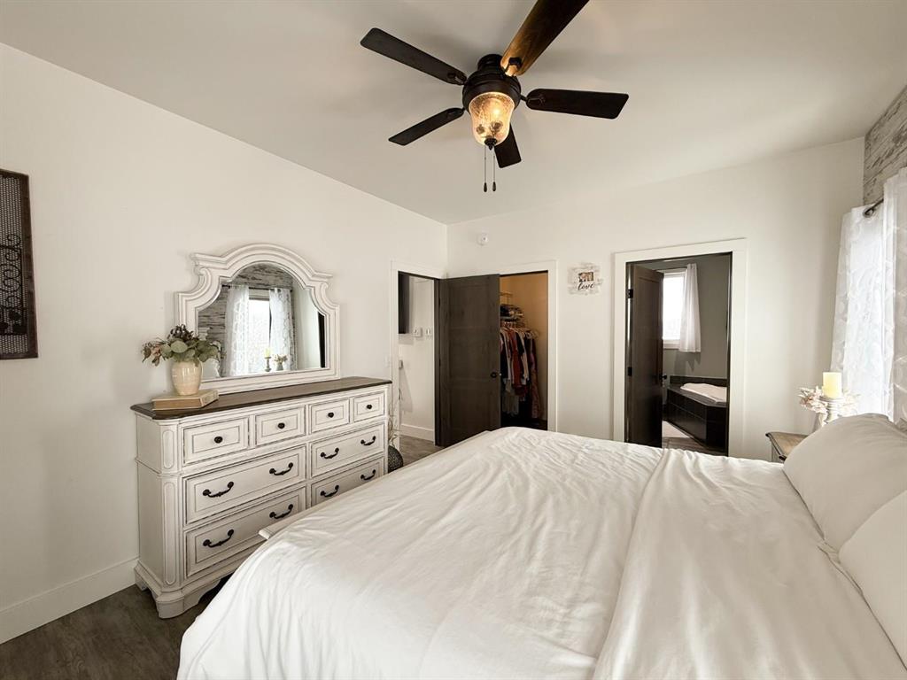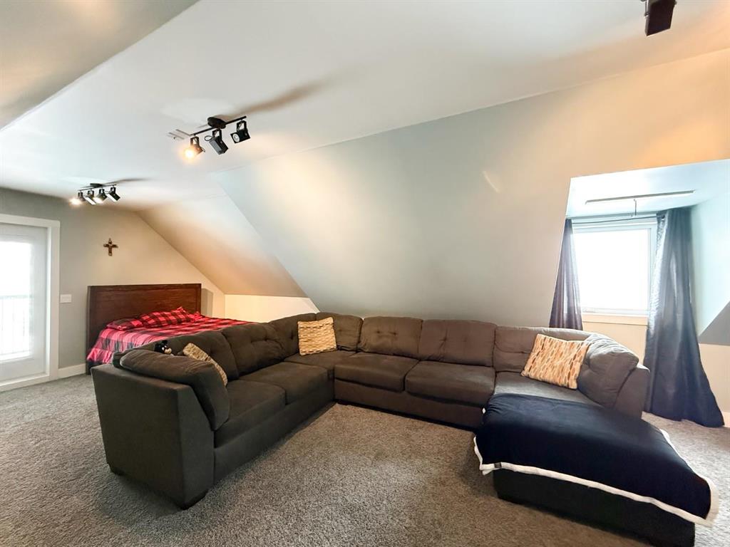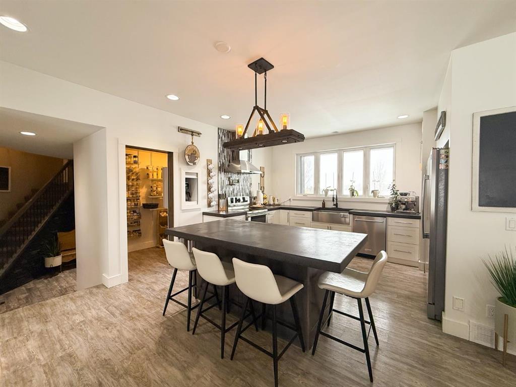 Enjoy country living just minutes from Winkler! Set on 4.17 acres, this 1,920 sqft home offers an open-concept layout w/ white kitchen cabinets, painted concrete countertops, island, walk-in pantry, & S/S appliances. The primary bdrm features a walk-in closet, ensuite bath w/ soaking tub & tiled shower, in-floor heating, & direct access to the deck. A secondary entrance leads to a 2 pc bath & the laundry area. Above the garage, is a 435 sqft bonus room w/ its own heating & cooling system & access to a balcony. The basement has in-floor heat, a rec space, 2 bdrms, storage & mechanical rooms. The attached 3-car garage, measuring 1,064 sqft, is also outfitted w/ in-floor heat. The yard includes a 24’ x 32’ heated shop, featuring 7' & 9' OH doors, 10' ceiling, epoxy flooring, & a 220-volt power outlet. A 40’ x 98’ barn w/ 100-amp breaker panel, is currently serving as cold storage. A large, fenced area with wind shelter & water supply makes it suitable for raising cattle or keeping horses. Additional amenities include a sound system in the shop, Starlink dish w/ router, 12-seat hot tub, 6-person electric sauna, 28’ diameter propane-heated swimming pool, playhouse, play structure, & chicken coop.