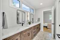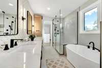 Fully renovated top to bottom in 2025, this stunning home offers exceptional craftsmanship, quality finishes & thoughtful custom details throughout. The impressive GR features soaring floor-to-ceiling windows, custom built-ins, cozy fp & access to the deck, creating a bright & inviting space. The elegant DR is perfect for entertaining w/a stylish wet bar & custom wine display. The gourmet kit boasts soft-close cabinetry, high-end appliances, quartz counters, fully equipped butler’s pantry & a family-size island w/attached dining table. A main floor office w/built-ins, guest bath & bedroom w/private 4-piece ensuite provide excellent flexibility. Upstairs, the primary suite features custom wall detailing, a dream WICC & a luxurious spa-inspired 5-piece ensuite w/heated floors, soaker tub & dual sinks. Two additional brs share a spacious 5-piece bath. Convenient UL laundry. The finished LL includes a rec room w/dry bar, games area, br & 3-piece bath. All mechanical systems are new including 2 HEF, 2 C/AIR, HRV & sump pump. The expansive outdoor space offers plenty of space for a pool, sunroom & more. AT/2. Ideally located close to shopping, parks, restaurants & coffee shops.