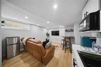 SS NOW, OFFER AS RECEIVED, Welcome to this beautiful 2023-built two-storey home situated on a desirable corner lot, offering a total of 6 bedrooms and 4 full bathrooms—perfect for large families. The main floor features a convenient bedroom and a full bathroom. Enjoy the bright open-concept living and dining area with 9’ ceilings and laminate flooring throughout. The modern kitchen is designed with quartz countertops, a stylish backsplash, and upgraded taller cabinets, providing both elegance and functionality. Upstairs offers a spacious primary bedroom with a private ensuite and walk-in closet, along with two additional bedrooms, a full bathroom, and a versatile loft and home office. The home also features a separate side entrance to the fully finished basement, which includes a rec room, 2 bedrooms, a full bathroom, and laundry. Currently being used as an Airbnb, providing excellent income potential. fully landscaped front and backyard, a 16’ x 12’ composite deck, and artificial turf in the backyard, perfect for relaxing. Additional highlights include central A/C, an insulated garage, and resilient bar soundproofing in the basement for added comfort and privacy.