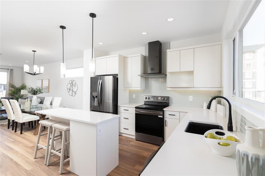OPEN HOUSE SAT - SUN 12:00 - 5:00 PM, MON -THU 4:00-8:00PM. Welcome to Ventura's Show Home The Avery A-22! In Highland pointe. This modern prairie style 1,330 sqft home features an open-concept main floor layout with 9' ceilings and luxury vinyl plank flooring, island kitchen with a huge rear window over the kitchen sink, soft-close cabinets, pot lights throughout the main floor, jack and jill bathroom between the kids rooms on the 2nd floor, large master bedroom with private ensuite with shower and oversized walk-in closet with freeslide shelving, Lots of upgrade includes Pile foundation, Delta Wrap, LED lighting, Decora light switches, 10 pot lights, Kohler plumbing fixtures & sinks, smooth painted white ceiling, quartz countertops, AC, Garage, front and back landscape, Deck, Side entry door to basement & much more. Quick Possession available.