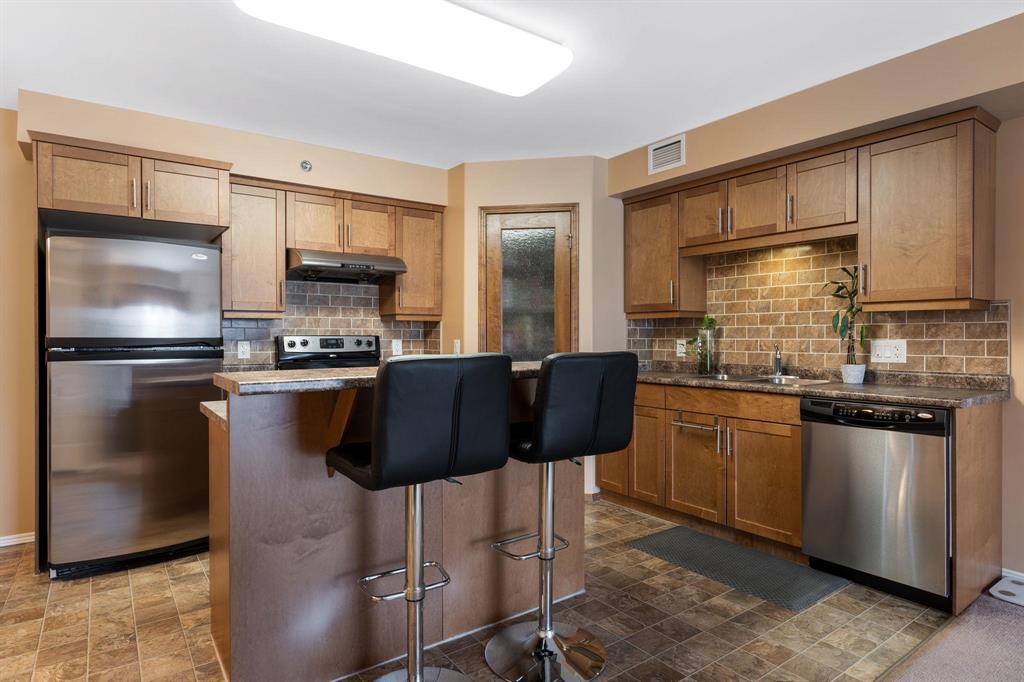 S/S Monday, March 9. OTP as received. Welcome to Ash Creek Condominiums! This nearly 1000 sq.ft. 2 bedroom top floor unit suite is pet-friendly and offers a bright and inviting layout in a well-maintained building! The open-concept design features a spacious dining area that flows seamlessly into a well-equipped maple kitchen with stainless steel appliances, tiled backsplash, corner pantry, and a bartop for casual dining. The adjoining living room provides plenty of natural light and comfortable space - perfect for relaxing, hosting friends or everyday living. You'll also find two comfortable bedrooms, a full bathroom, and convenient in-suite laundry. This unit also includes an underground heated parking stall with ample visitor parking available for guests. Located steps from the Seine River Trail and close to a variety of shopping options. Units are rarely available in this building and with condo fees of only $360/month for a unit of this size, you don't want to miss this opportunity. Book your showing today!