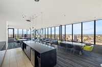 Amenities include 21st-floor rooftop terrace w. pano city views, BBQ area, fire lounge, and year-round entertaining space, 24-hour fitness ctr and pvt theatre.