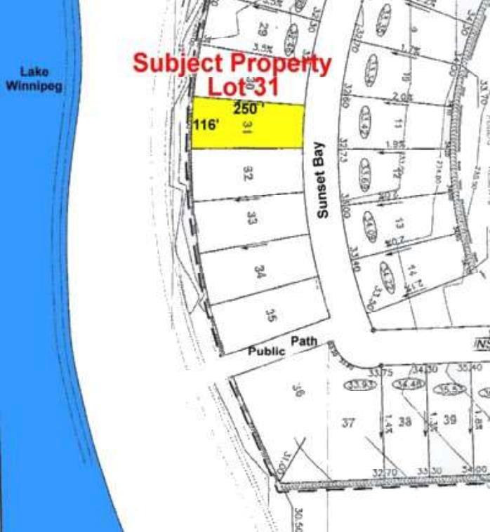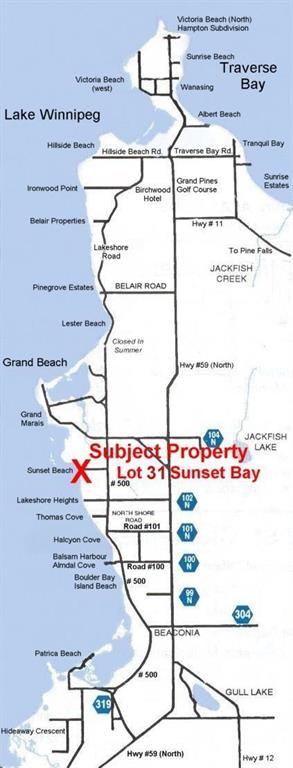Incredible opportunity for your perfect lake property! This exceptional lakeview lot features a sandy beach just steps away and is located a quick 10 minute drive south of Grand Beach in the sought-after Sunset Bay Estates subdivision. Situated on a quiet, peaceful street, this property features a beautiful mature treed lot, with a culvert and approach already installed, and partial clearing already completed, making it ready for you to build your dream home/cabin. Even better, the low-pressure sewer levy has already been paid for in full. The private beach coves along the shoreline feature the famous soft white sand that the area is known for, and faces west onto Lake Winnipeg, offering breathtaking sunset views. Truly one of the best lots available in this exciting development! Ready for your dream build and located less than an hour drive from Winnipeg you really don’t want to miss out on this exceptional opportunity for your family!