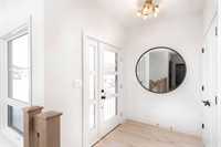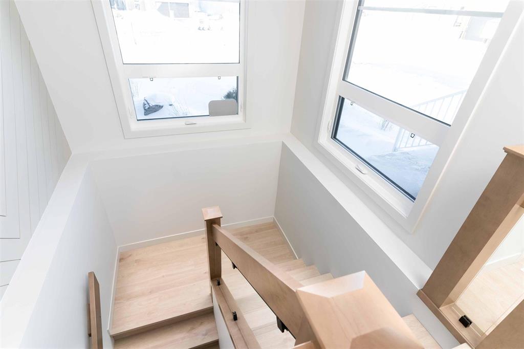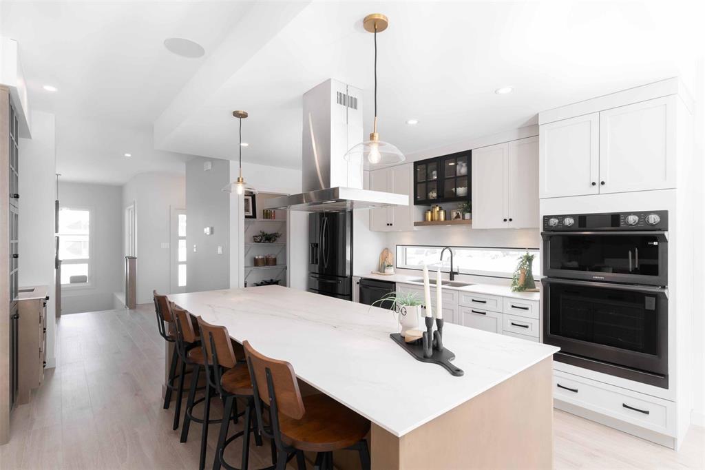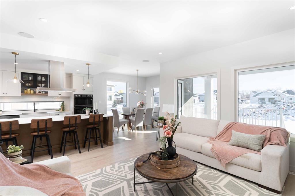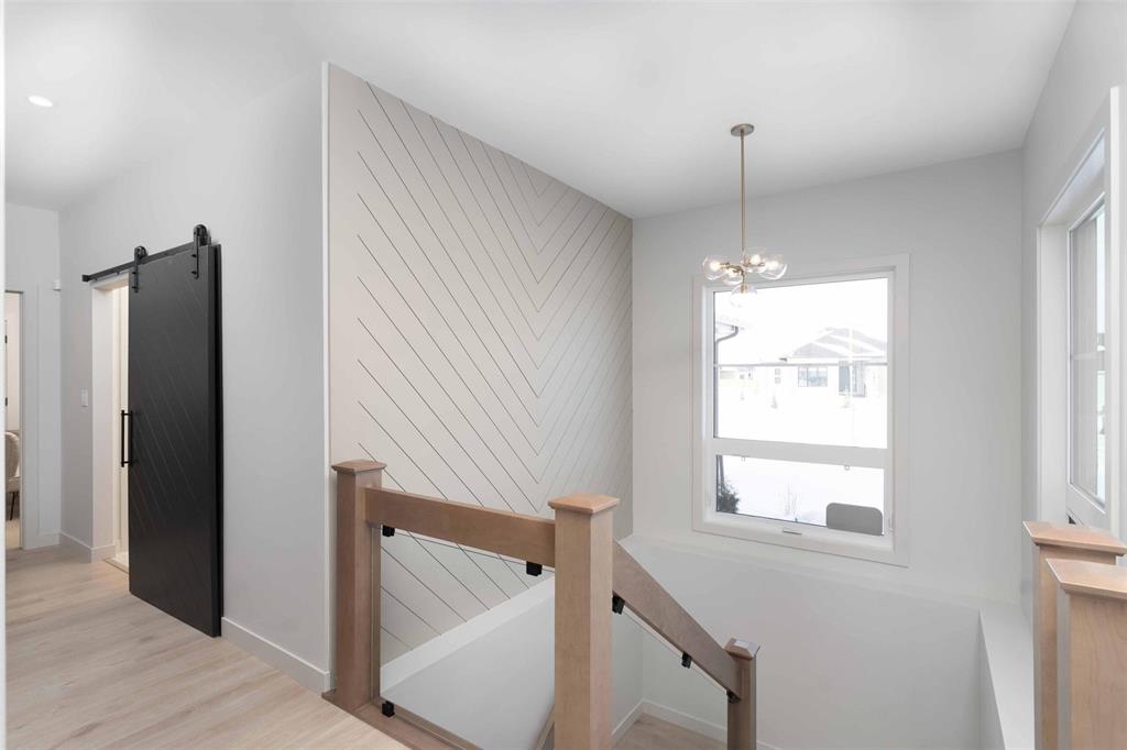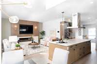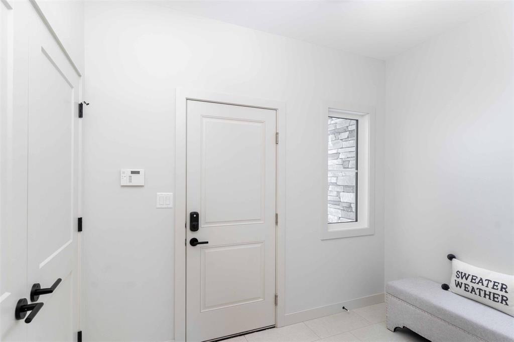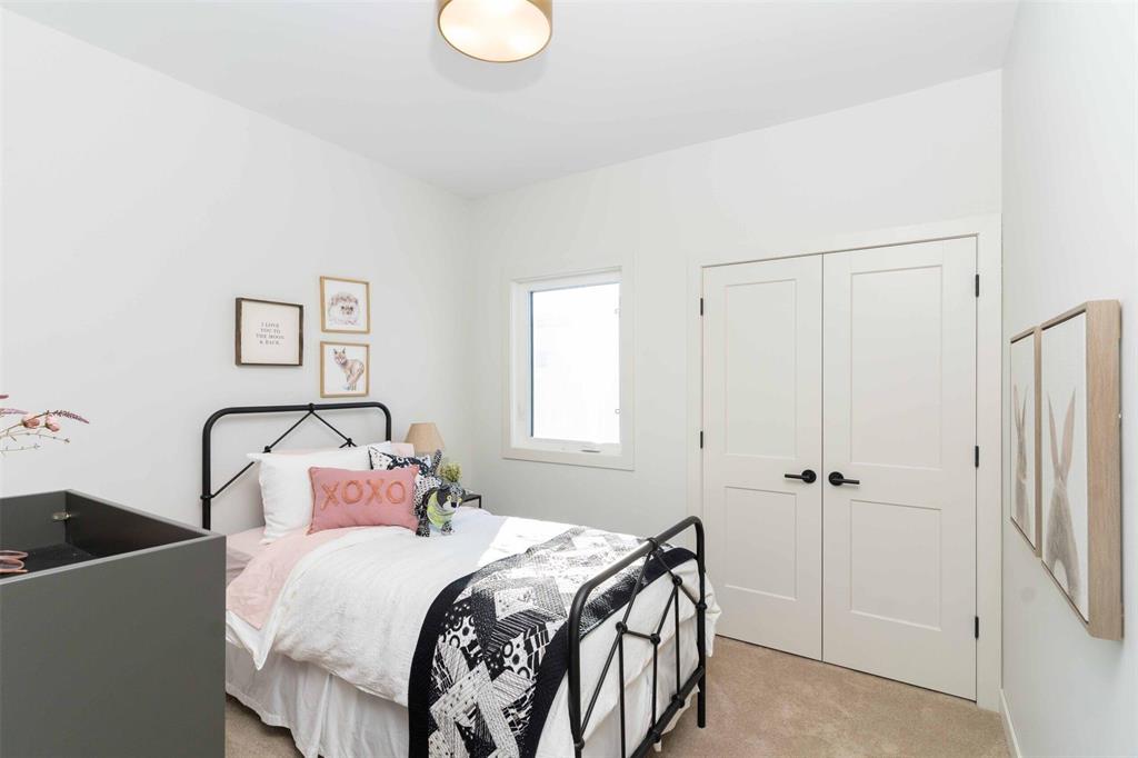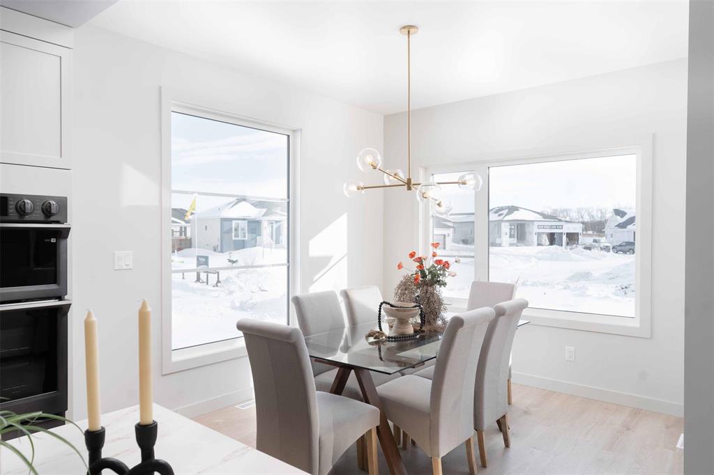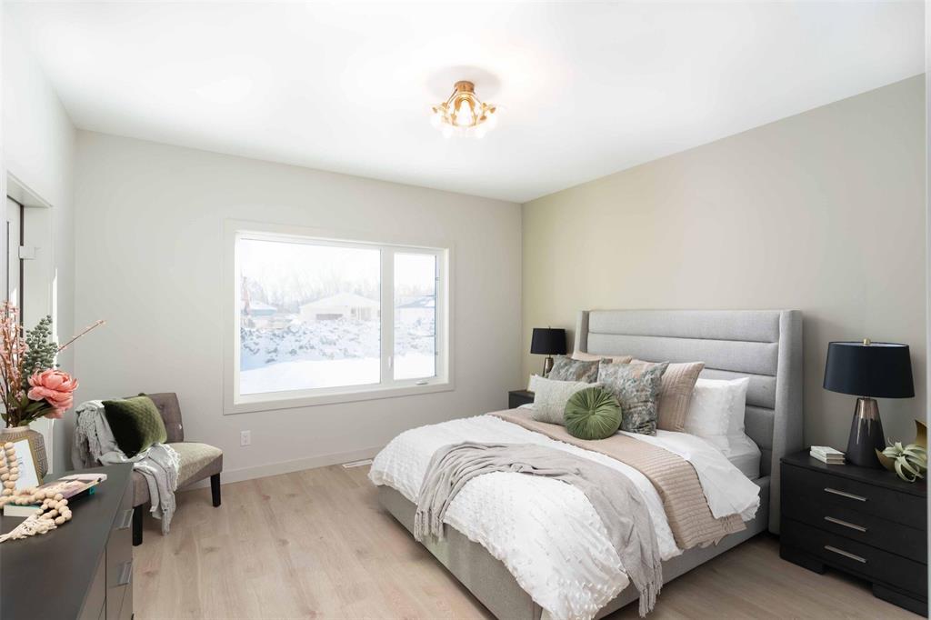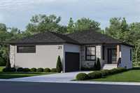 Foxridges practical modern design bungalow. Offering 1,683 sq. ft. of living space, this 3 bedroom, 2 full bathroom home is built for everyday comfort. The exterior features cultured stone with acrylic stucco, dark roofing, and black accents on windows, garage door, and front entry. A covered entry with wood column accent welcomes you home. Inside, 9-foot ceilings and laminate flooring create an open feel throughout the great room, dining, and kitchen. Main bath and mudroom offers luxury vinyl tile. The kitchen comes w/ quartz countertops and ceramic tile backsplash, professionally designed laminate kitchen cabinets with 36” high upper cabinets, and a modern stainless steel chimney-style hood fan. The great room includes an entertainment unit w/ an electric fireplace. The primary suite offers a walk-in closet and private ensuite with cultured marble shower, and quartz vanity. Other features include: 9’-0” foundation walls on cast-in-place piles, LED lighting package, WIFI thermostat, 200-amp panel, EV charger rough-in, and radon protection under basement floor with rough-in for future venting, triple-pane windows, and central A/C. Backed by the 1-2-5-10 Home Warranty. *Photos are from previous build*