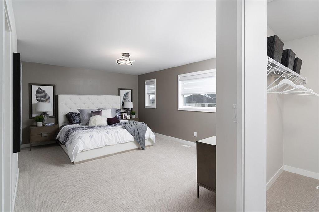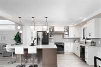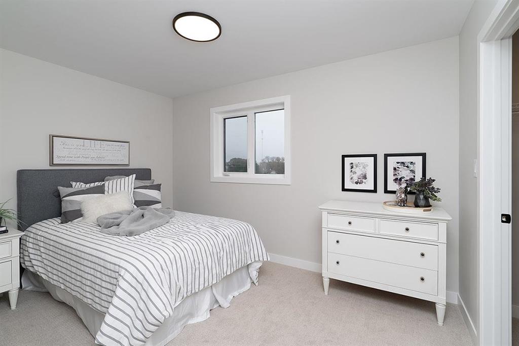 Upstairs, convenience meets design with a full second-floor laundry room, while the primary bedroom enjoys its own private level, featuring a generous walk-in closet and a luxurious ensuite. Practical upgrades include a 200 amp electrical panel, a 60-gallon hot water tank, and energy-efficient triple and dual pane Low-E windows. Interior finishings include crisp 4-inch MDF baseboards and 3-inch casings throughout.