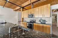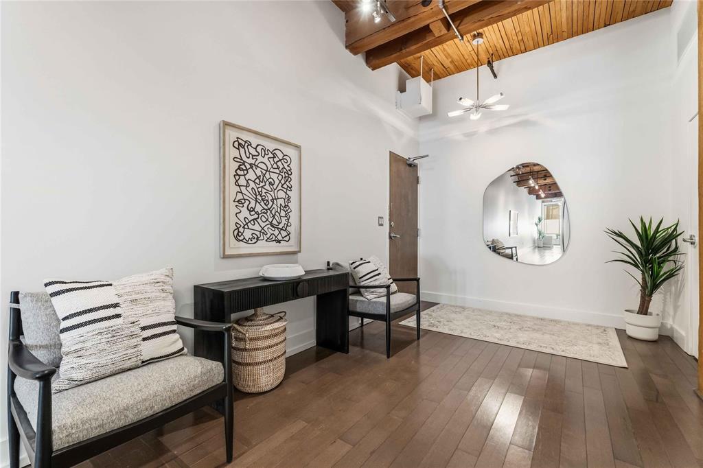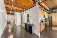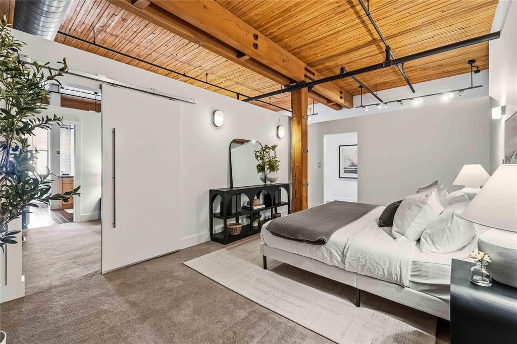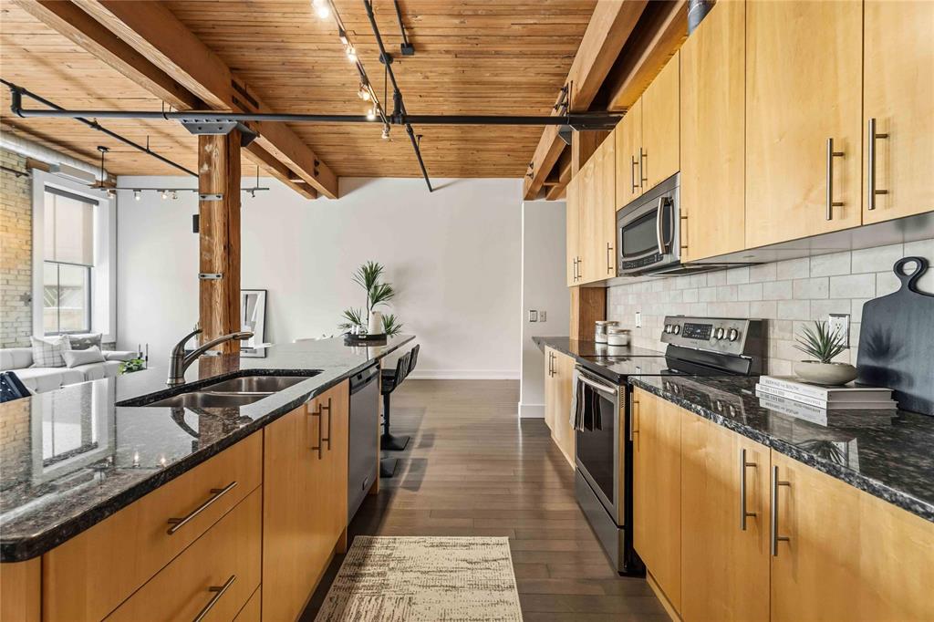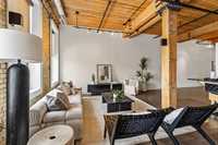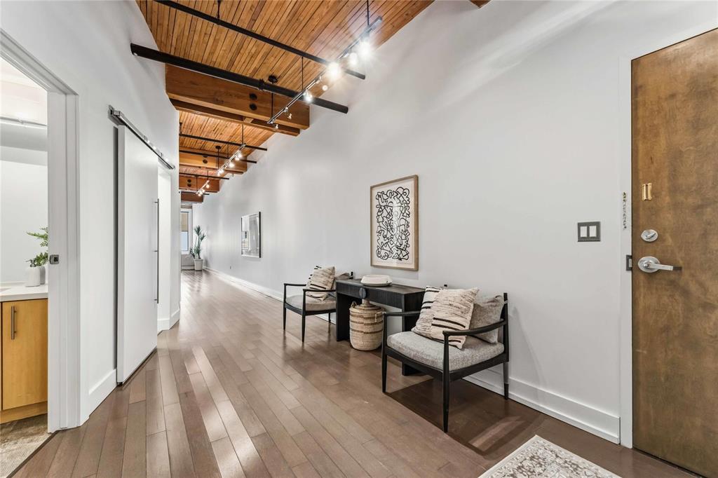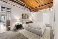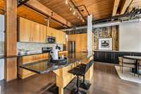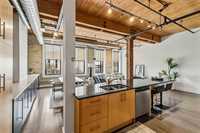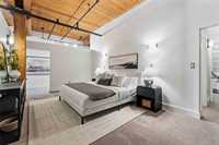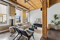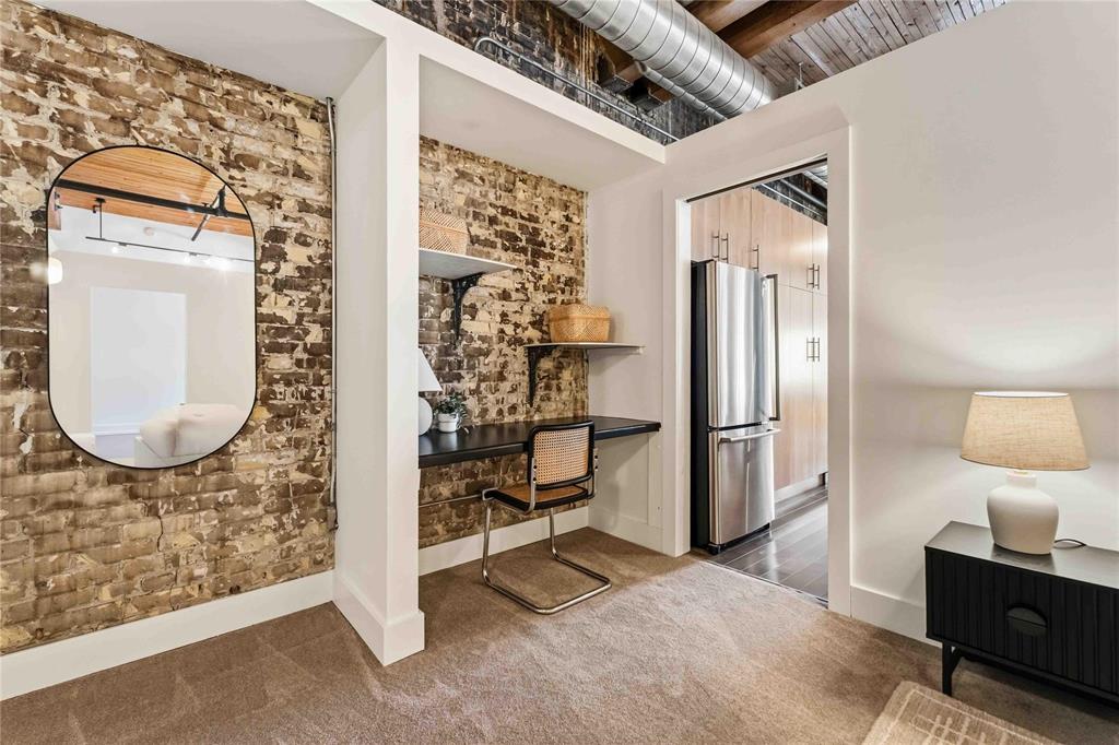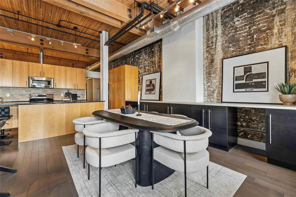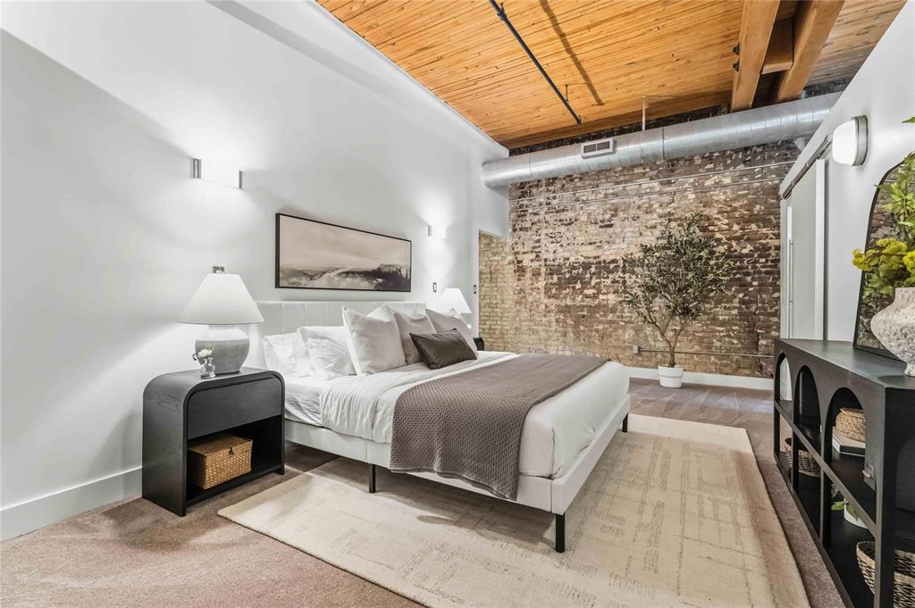 Step inside to soaring high ceilings, exposed brick walls, and beautiful wood beams that define authentic loft style. The open-concept layout flows seamlessly through a spacious, functional living/dining/kitchen area, ideal for entertaining or everyday comfort. In-suite laundry and in-suite storage completes the convenience. Recent updates incl. paint (26'), washer/dryer (26'), carpet (25').
