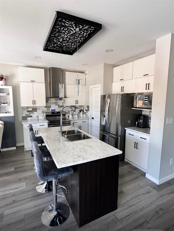 storey home offers 4 bedrooms and 3 full bathrooms with a functional layout for everyday living. The main floor features a bright living area, a bedroom with a full bathroom nearby, and an eat-in kitchen with a chimney hood fan and backsplash. Upstairs you’ll find the primary bedroom with its own 4-piece ensuite, along with two additional bedrooms, another full bathroom, and a loft space that can be used as an office or lounge area. The basement has also been completed, providing additional living space. Accent walls, updated cabinetry, recent landscaping, and a water softener have been added, enhancing the home while maintaining its original charm. The fully heated oversized double garage provides excellent year-round convenience. Located close to schools, parks, and local amenities, making it a great option for families.