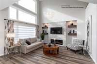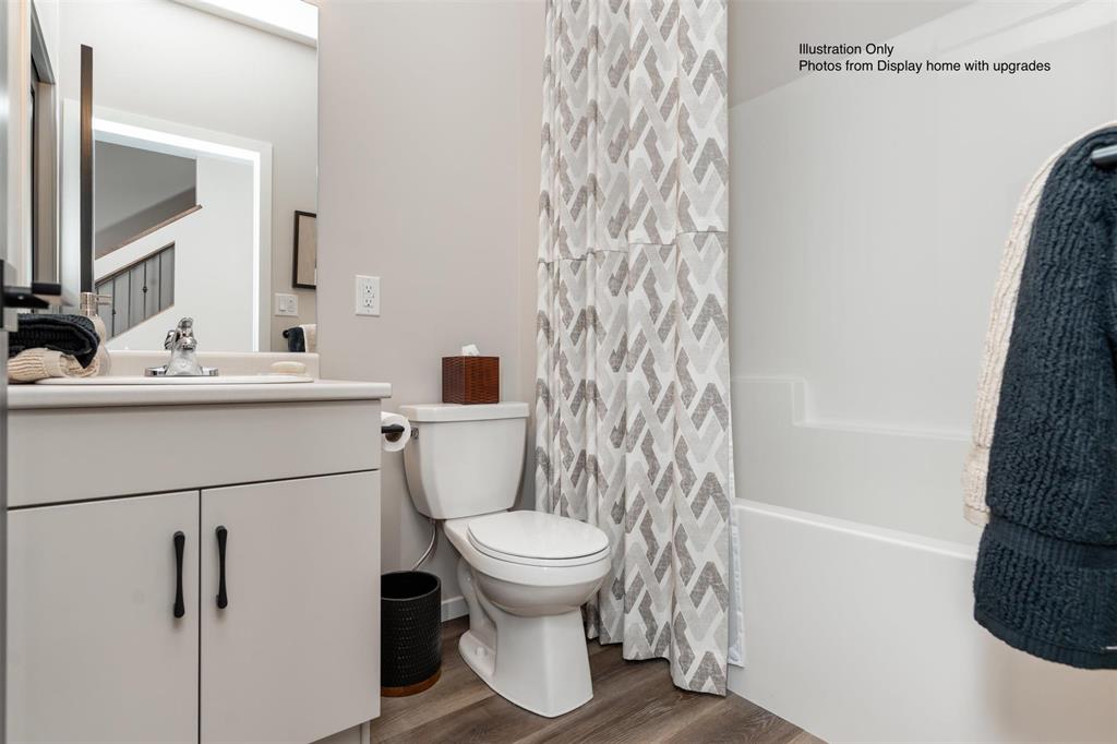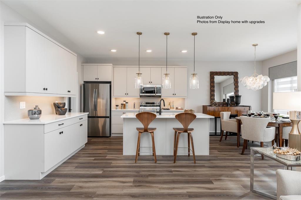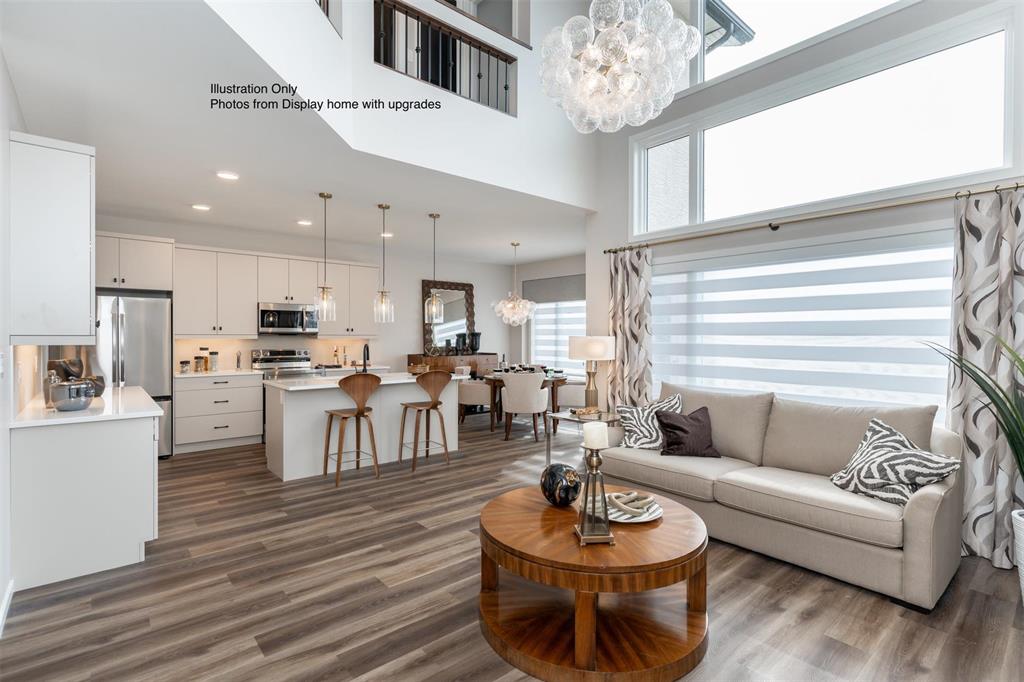 The Hazel 1889 SF of living! 4 bedrooms comes with double attached garage and 3 full bathrooms. The main floor has 9 ft ceilings and the Great Room features open to above with a 17 ft ceilings plus glass inserts over looking the great room & a Dining area w/garden door to your future deck. The kitchen w/large island SS dishwasher, & Soho style cabinetry 41" upper cabinets, SS Microwave OTR hoodfan, LED disc lighting in kitchen & pendant lights over the island. The main floor also features a bedroom & full bathroom. Vinyl plank flooring on the main floor except for the bedroom to be carpet. Upstairs is 3 more bedrooms & 2 full bathrooms & 2nd floor laundry including the Primary bedroom ensuite with standing shower with glass sliding doors. 32 oz 7lb carpet upgrade. Home is to be built with show home in another area to view by appointment. Call for more information. No escalation. Photos from display home, finishes may vary.