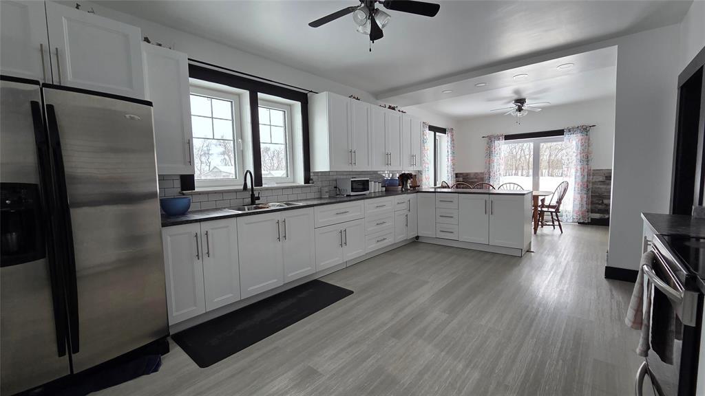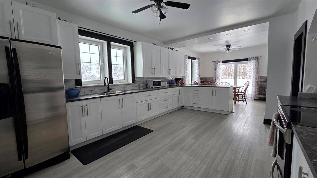 Showings Start Thursday March 12th. This sprawling 1770 sq.ft. 4 bed 2 bath home is great the moment you walk in the home.. Stepping in - A large spacious mudroom perfect for many pairs of shoes.. WITH IN FLOOR HEAT! A Large kitchen/ Dining area for the family gatherings is bringht and spacious. The livingroom - The warmth and character of the the hardwood flooring - A sunroom off of the livingroom (currently used as an amazing bedroom- #5) - surrounded with windows. A second 4 piece bath on the main floor.. heading upstairs are four bedrooms - enough room for the entire family. Making your way outside - there is a summer outdoor kitchen area tucked in the trees with a firepit - a lovely getaway. A single oversized detached garage with workshop Metal clad, insulated walls - metal roof. A chicken coop with fenced in area, and many storage buildings. LOCATION - 5 MIN TO OKNO - SEVERAL MANUFACTURING FACILITIES. 10 MIN SOUTH TO ARBORG, 10 MINS EAST TO RIVERTON - GREAT LOCATION CENTRALIZED! many upgrades including German windows and doors through the home.(21) Addition of entrance area w/infloor heat, 4 piece bath main floor laundry. (22) Shingles on main home 2020 Insulated basement (spray) (22)