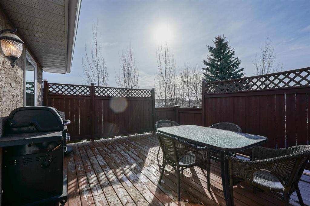 Downstairs, the fully finished basement offers 2 additional bedrooms, a full bathroom, a large rec room, and an oversized media room—perfect for movie nights, a games area, or a home gym. The basement also provides direct access to the double attached garage for added convenience. Step outside to enjoy the fully fenced backyard and large deck, ideal for summer BBQs and relaxing evenings. A fantastic opportunity to own a move-in ready home in a peaceful, family-friendly location.