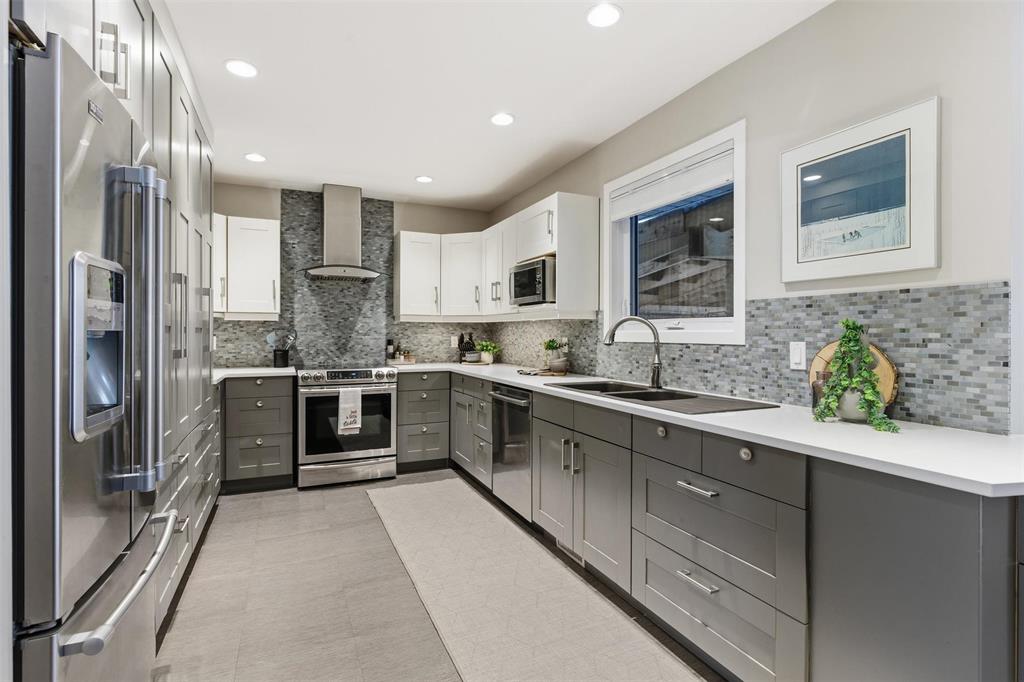 S/S 12/Mar. OTP Mar/23. This 2400+ sqft home has been lovingly maintained and upgraded by the current owners and is an absolute pleasure to show. The unique layout is terrific for entertaining and the no maintenance yard means you can just sit back in the hot-tub and enjoy your family time . Den off the front foyer. Lge formal dining area that overlooks the impressive kitchen with an abundance of cupboard and counter space as well as the sunken family room.The primary bedroom is on the main floor and has a 4pce ensuite . There are 4bdrms up and an additional bedroom in the basement (the basement was used as a suite with a separate entrance). There are 3 & 1/2 baths. Too many upgrades to list. If you have been looking for space , in a move-in home , then this is a “Must See” home !!!