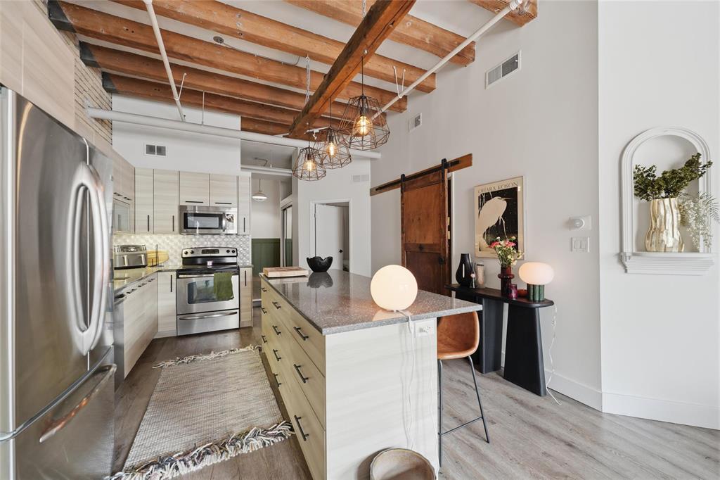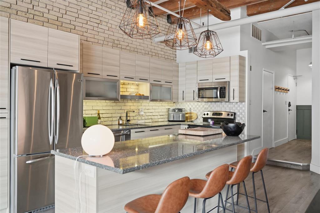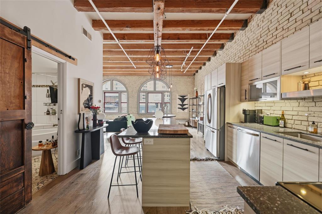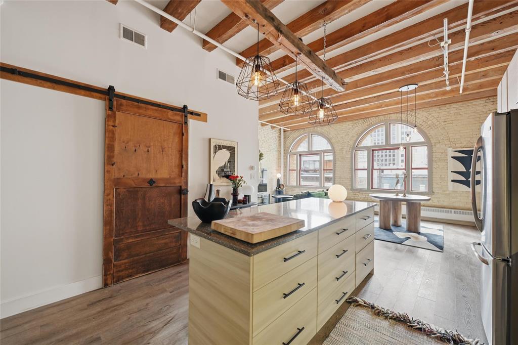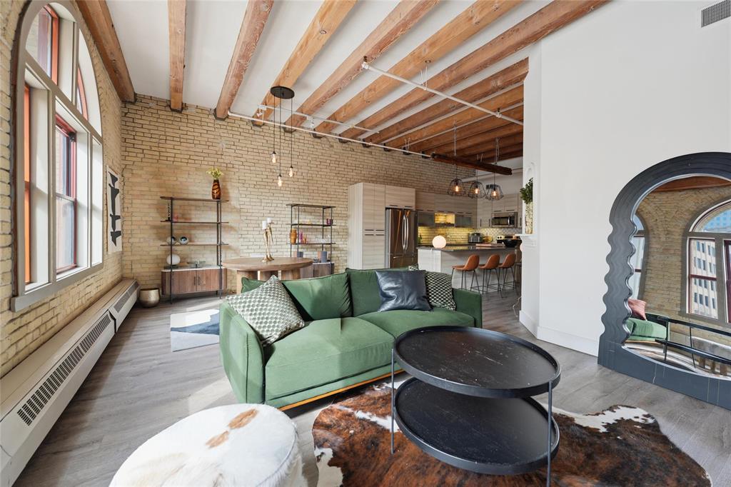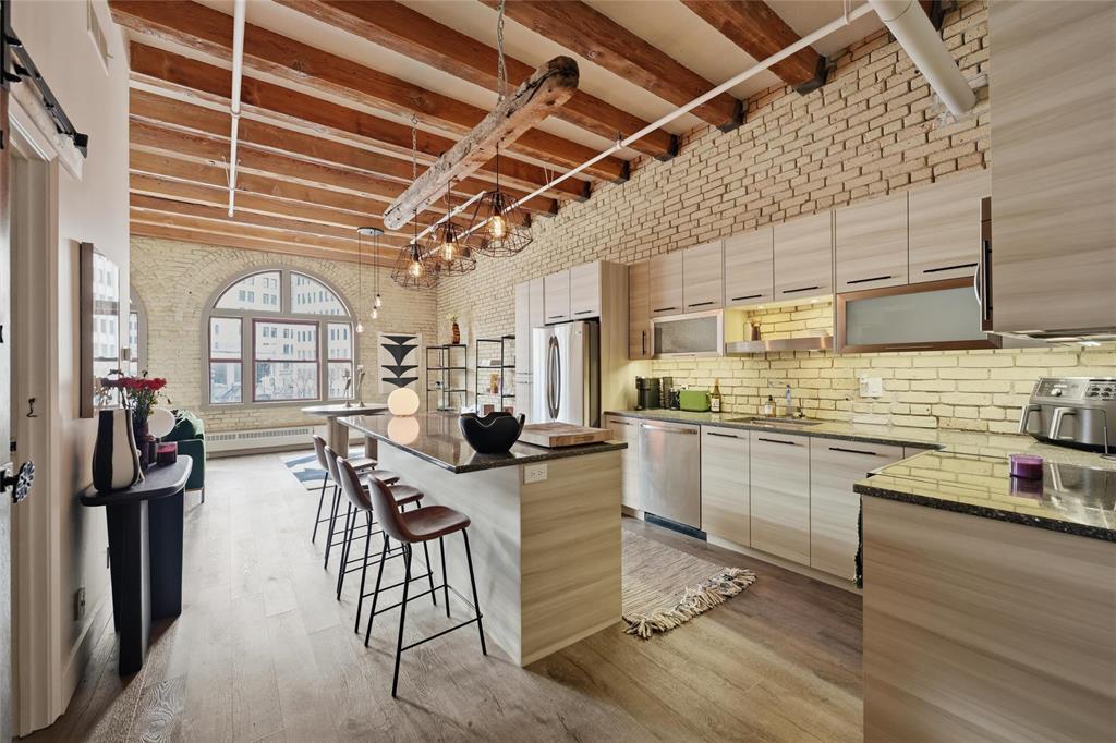 Showings start Wed March 18th-Open House March 22nd,2-3:30-offers anytime! If you have been waiting for something with the 'WOW' factor, this is your new condo! Almost 1100 sq ft, this one bedroom Loft condo is right out of a magazine! Incredible huge south facing arched windows only found on one floor in the entire building! Super bright and sunny! Original warehouse brick walls! Huge Fir beams and beamed ceiling! Gorgeous kitchen completely renovated with large Island! Spacious remodelled bath! Newer flooring throughout the condo! Beautiful creative touches such as repurposed antique doors! Unique custom made Island light fixture made from a reclaimed beam! Extra large bedroom easily accommodates a king sized bed and has a walk-in closet! Insuite laundry! All sized pet friendly! Plus underground heated parking included in your reasonable condo fees that also include heat and water! Roof top patio for all to enjoy! If you have seen all the other condos out there and you are looking for that something extra special, this is the one- book your appointment today!