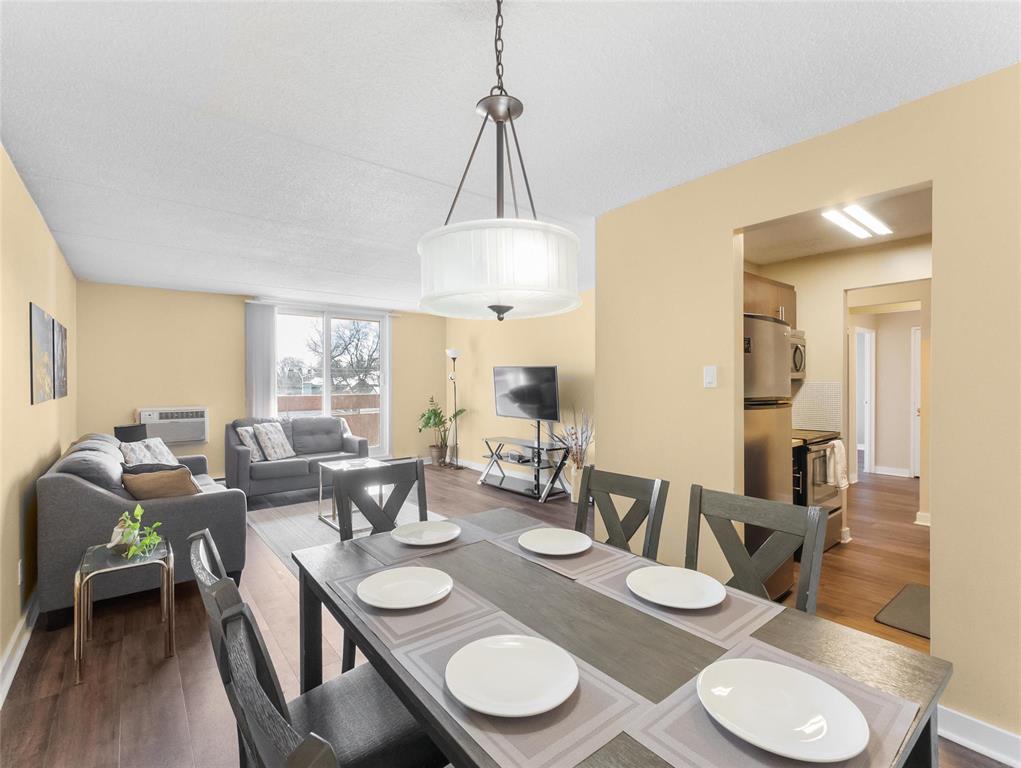 Showing starts now. Offers anytime. Welcome to this bright, inviting and spacious 2-bedroom, 1 bath condo offering comfort, convenience and incredible value! Located in a highly desirable area, this condo is perfect for first time homebuyers, downsizes or anyone seeking low-maintenance living. Most of the furnitures come with it, truly just move in and enjoy. Included in the sale(as seen on photos): sofa and love seat, two-queen sized beds with mattresses, dresser, cozy dining, coffee and side tables. No need to shop for anything- your new home is already complete, comfortable and ready for you. You'll also love the pet-friendly environment, so bring your furry companion along! Plus the condo fees include: heat, hot water, hydro, parking and water, giving you peace of mind and predictable monthly expenses. Whether you are commuting, shopping or enjoying nearby amenities, this location has it all! A wonderful opportunity to own a cozy, well-cared for space in a convenient neighbourhood.