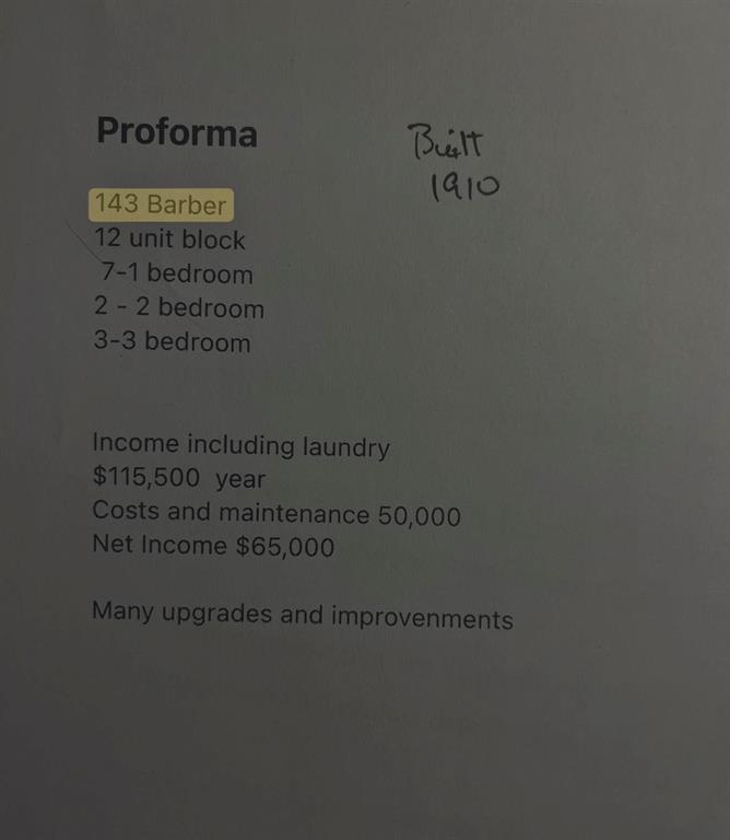 12 unit block all units self contained 3-3 bd , 2-2bd, 3- 1bd, 4 bach many updates low taxes good return on investment.
