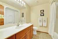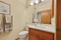 This incredible bungalow condo offers the perfect blend of spacious living & a low-maintenance lifestyle. Warmth, character & sunshine permeate the entire home, offering a stylish but homey place to call your own. The beautiful entry & gleaming hardwoods lead to a gorgeous great room with floor to ceiling windows & gas fireplace. The eat-in kitchen is flooded with natural light. It features maple cabinets, quartz counters, tiled backsplash & a great pantry. Just off the kitchen is the formal dining room. This home has great flow but with well-defined spaces. The primary bedroom is spacious and homey, and offers a walk-in closet and ensuite bathroom with walk-in/convenience shower. The main floor also has a guest room (currently used as a den), 4-piece guest bathroom & laundry room. The lower level is bright & spacious with a large rec-room. The large third bedroom offers another walk-in closet, and a third 4-piece bathroom is located nearby. Incredible storage in this home too! Outside is your west-facing backyard, tucked into the trees. True outdoor relaxation without maintenance! Double car garage & front driveway. Numerous updates. Close to all amenities. This one is a gem!
