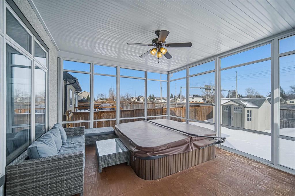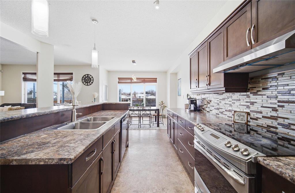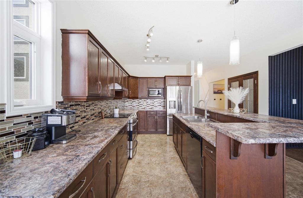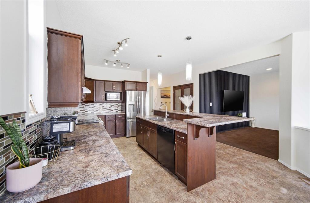 S/S March 16th. OTP on March 24th. Rarely available 2,375 sf 2-storey that is perfect for a multi generational family and is situated close to all the amenities that you would expect in Bridgwater Forest. This 7 bedroom home has a modern take on a classic floor plan with a large front entrance that has a built in bench with extra storage as well as a den that is conveniently located at the front of the home. The eat-in kitchen has lots of maple shaker style cabinetry with a large island, stainless steel appliances, pantry and backsplash as well as direct access out to the sunroom. The adjoining sun room is spacious in size with big bright windows and a beautiful feature wall. Upstairs there are 4 bedrooms plus a loft space with the primary having room for a king size bed and is complete with a large walk-in closet and full ensuite bathroom. Downstairs the bsmt is fully finished with an additional 3 bedrooms that are all large with full egress windows as well as a 3rd full bathroom and a large kitchenette area. Outside the yard is fenced and landscaped with a large sunroom with hot tub as well as a large storage shed.