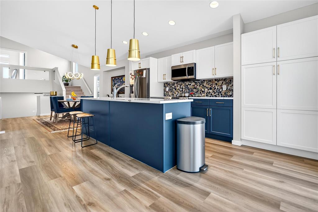 S/S now,offers as received.Former Hilton Homes SHOW HOME built on piles offers 1883 sqft of innovative design, everyday functionality, premium upgrades throughout.Originally featured in the Parade of Homes,this standout property showcases modern elegance with a striking Cabover exterior & a professionally landscaped front yard for exceptional curb appeal.Open concept interior is flooded with natural light & features stylish vinyl plank flrs,soaring ceilings,designer lighting,remote-control window coverings,security system,Ring doorbell & floodlight camera.3 spacious bdrs & 2 beautifully finished baths, along with a gourmet kitchen boasting white granite countertops with gold veins,2 tone cabinetry,multicoloured RiverRock backsplash, s/s appliances with oversized fridge & a massive breakfast buffet offering abundant storage &prep space perfect for entertaining. The adjacent LR &DR areas provide an ideal setting for gatherings, with patio doors leading to deck & patio (2025)for indoor-outdoor enjoyment. Upper level features a gigantic primary bedroom,spacious walk-in closet & a spa-inspired ensuite complete with a luxurious jetted tub & powder area. Located near shopping, dining & schools.
