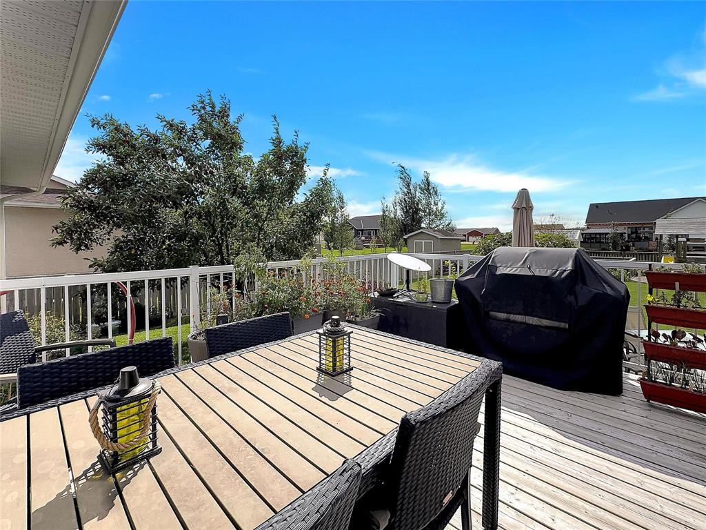 Tax is gross amount BEFORE any available rebate. Welcome to 140 Autumnwood Dr, an absolutely charming 6 bed home. 3 bedrooms up, 3 down, and 3 full bathrooms. There are also 3 living spaces. When initially built, the 3rd space was a garage but has been converted to living space; could be changed back if that's your preference. A large perennial bed in the front offers incredible curb appeal. The drive has been widened to accommodate multiple vehicles. Inside, large windows let in loads of natural light that gleams off the hardwood floors. Open concept living is ideal for a family...as is the main floor laundry. The lower level offers 3 more bedrooms, purchaser should confirm egress, large living space, storage room, large utility room and 3 piece bath. Outside there is plenty of space to park a trailer or 5th wheel beside the house. The fenced backyard is like a beautiful oasis. Extensive decking, attached gazebo, she shed/playhouse with power, storage shed, play structure, firepit & more. This is a lovely lovely property in a great community. Gimli offers K-12 schools, shopping, year round recreation, medical, great arts community & just 50 min to Wpg.
