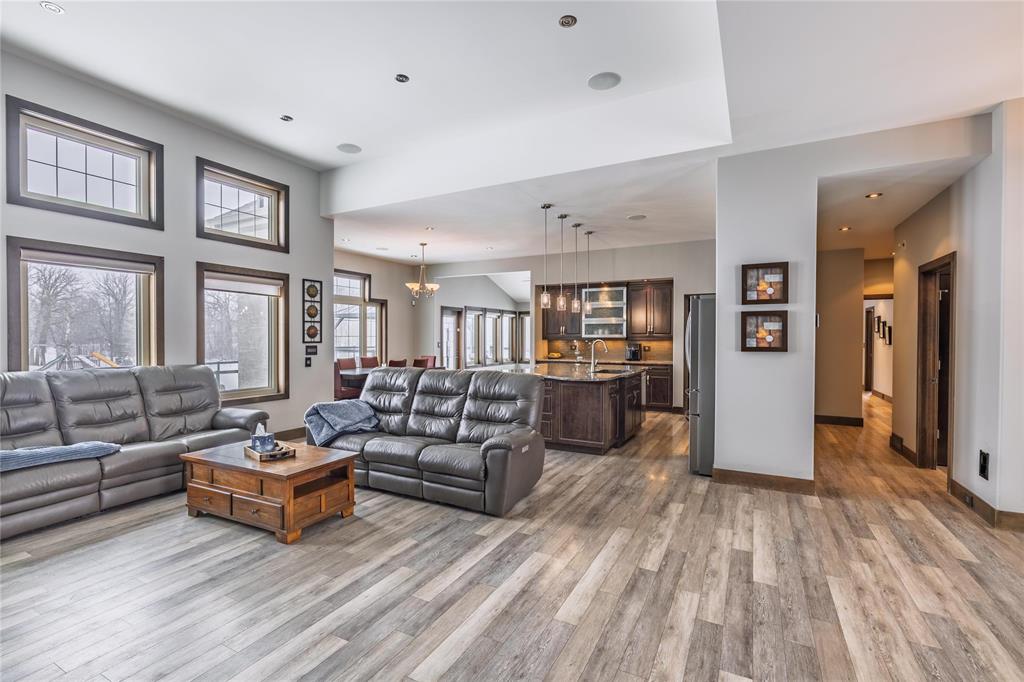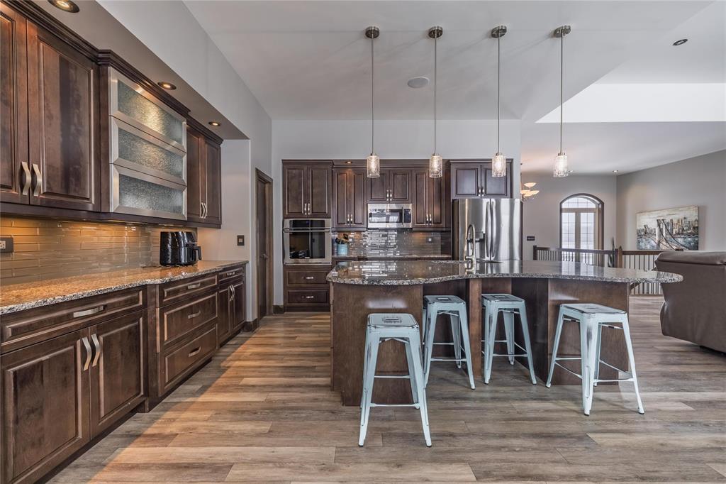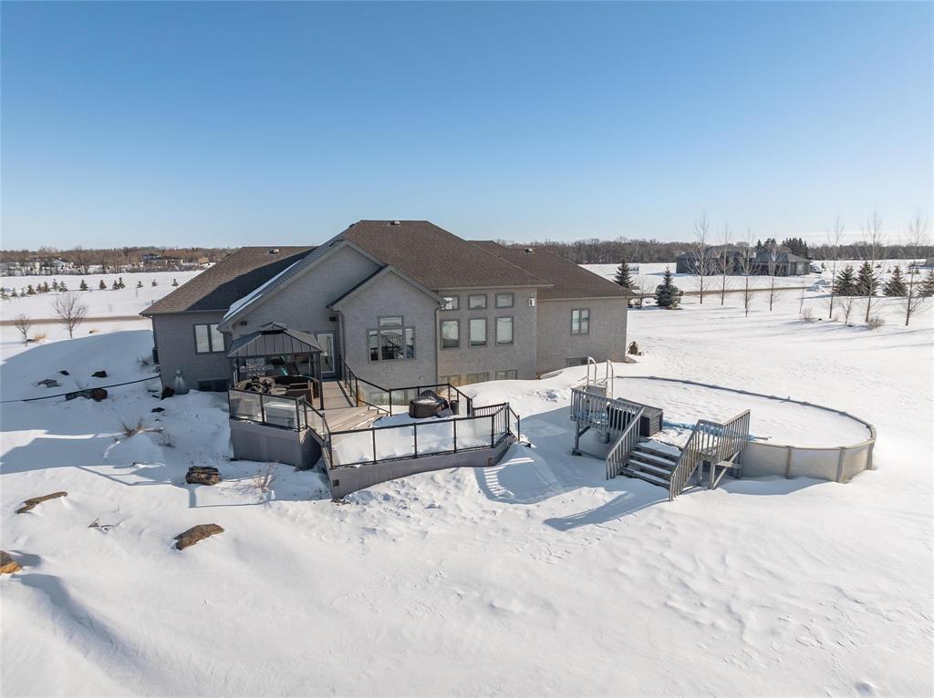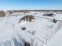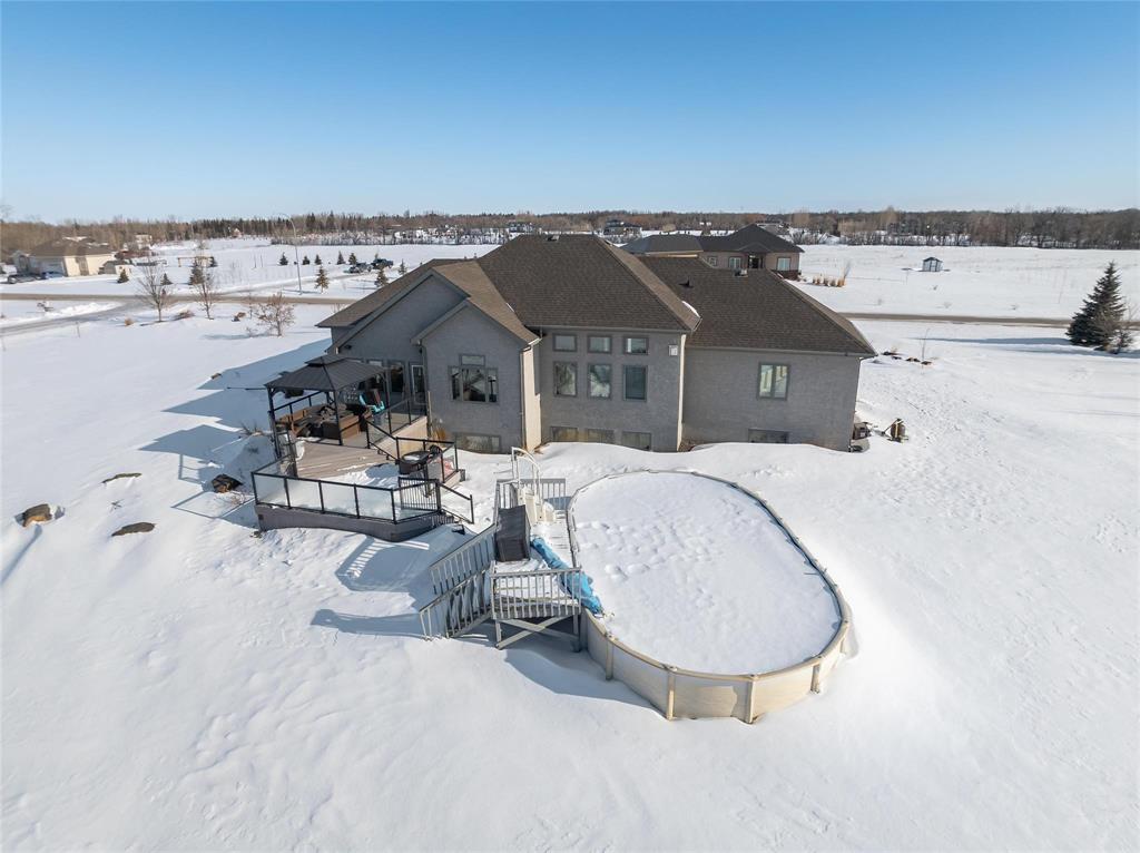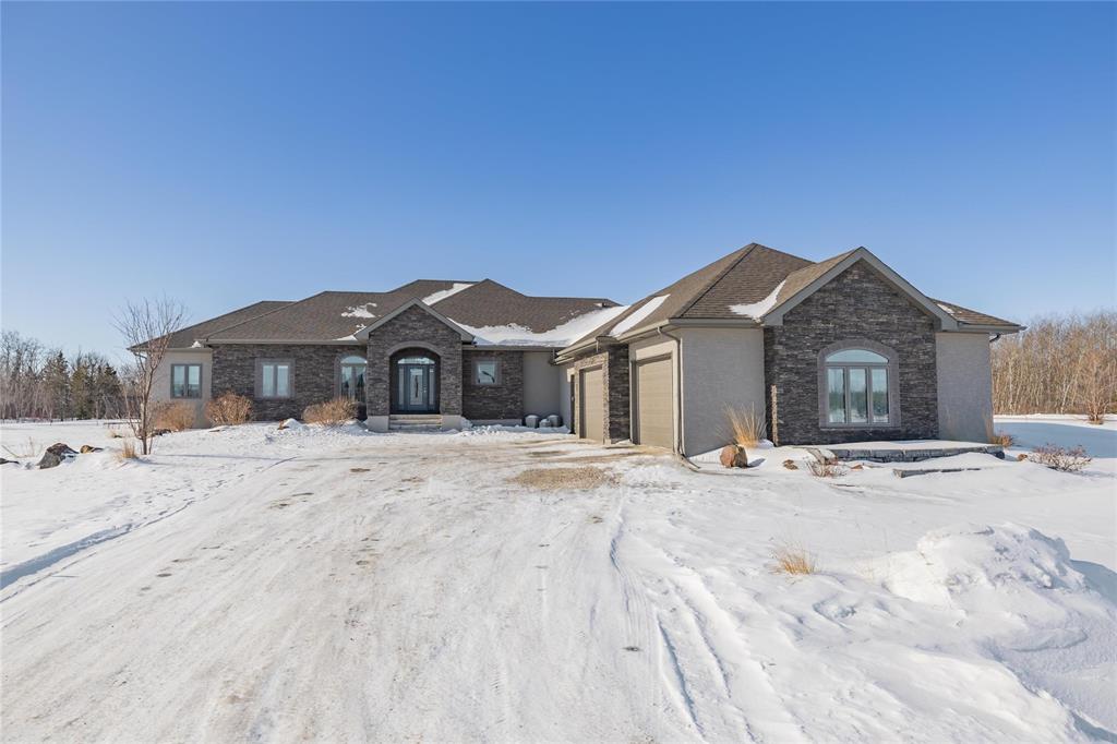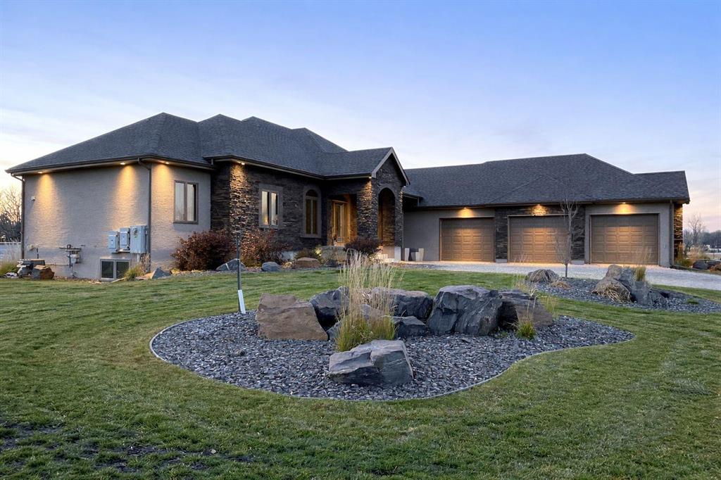 2617 square-foot bungalow, built in 2016, 1.38 acres – this is the complete package. Sprawling main floor w/ great room, 10-12’ ceilings, and gas fireplace onto modern kitchen, giant island w/ quartz tops, loads of storage and cabinetry, corner pantry, and stainless appliances! Adjacent dining area leads to sunroom w/ warm & sunny south facing windows and two-piece powder room. Principal bedroom has a 5pce ensuite w/ double sinks, air tub, and glass/tile shower. Three more terrific bedrooms on the main floor provide more than enough space! Main floor laundry and second full bath also upstairs. Finished lower level is fantastic! Open and spacious rec room w/ wet bar, games room, two more bedrooms, plus media room w/ projector, screen, and speakers included! Great storage space in utility room, w/ staircase up to attached 45x29 triple garage w/ in-floor heat, workbench, cabinetry, and electrical panel. Composite deck in south-facing back yard, above ground swimming pool, professional landscaping, and so much more. Dual gas furnaces, dual air conditioning units, house is equipped with Control-4. 400-amp service! Marathon HWT, HRV, steel beam, piles, and ICF construction.