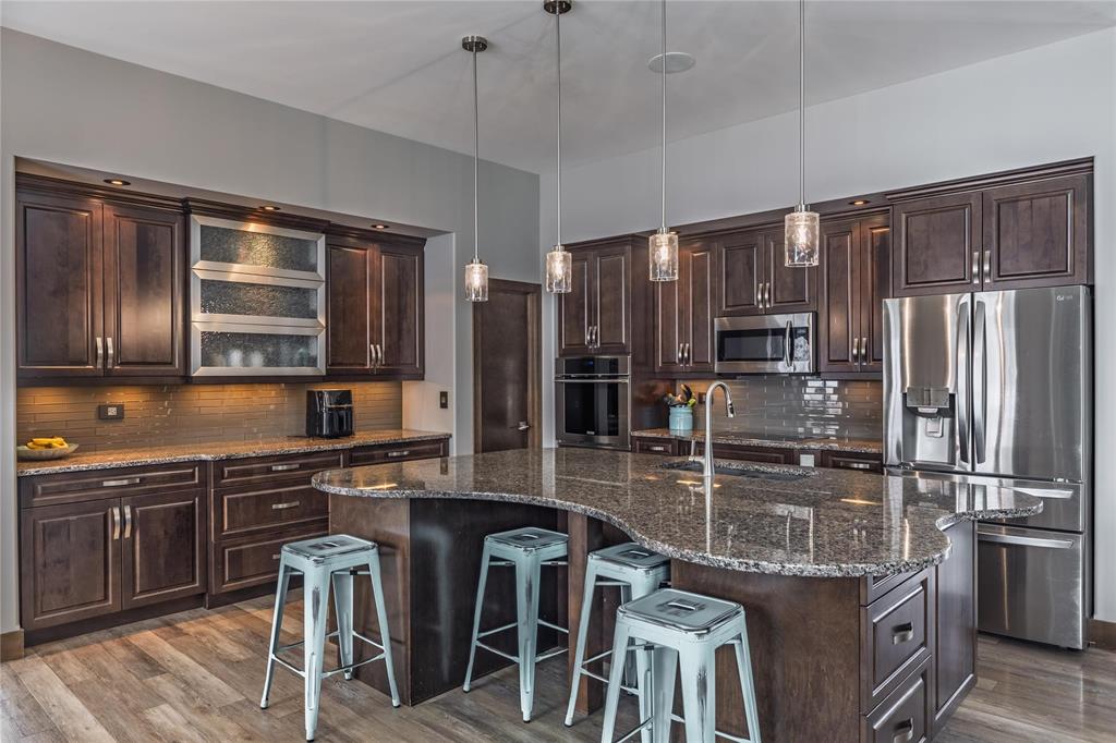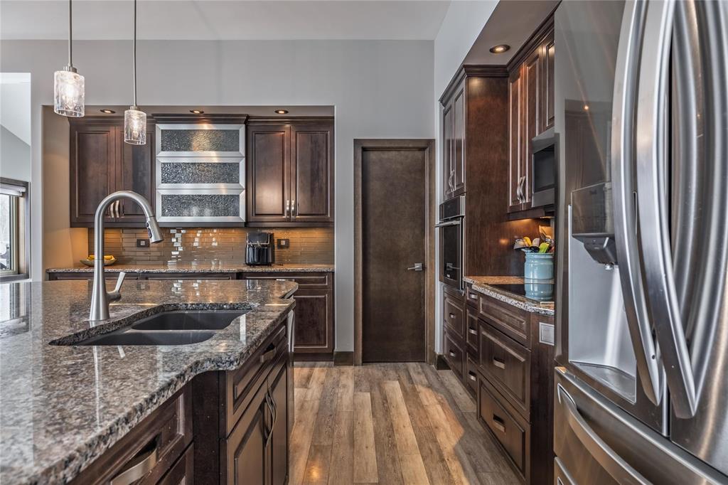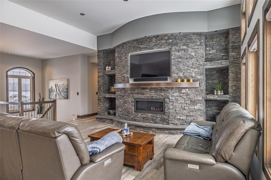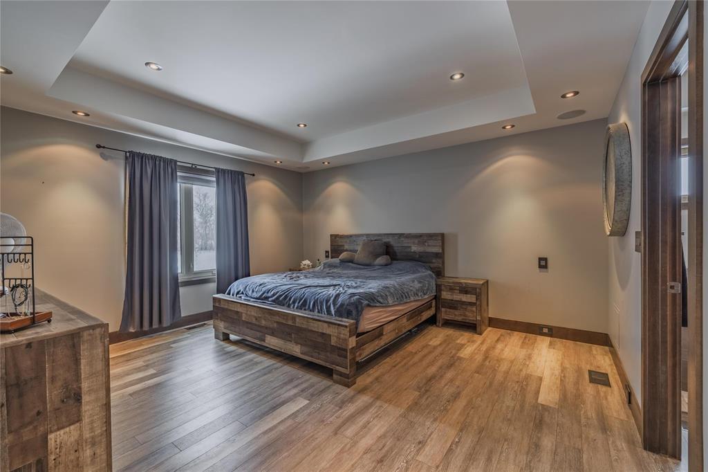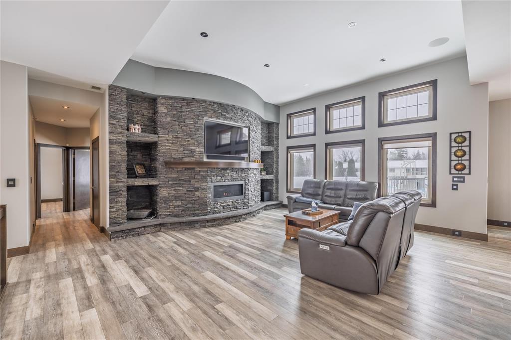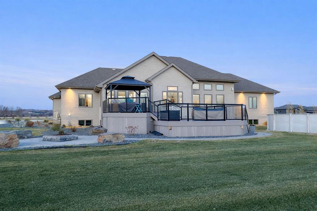 2617 square-foot bungalow, built in 2016, 1.38 acres – this is the complete package. Sprawling main floor w/ great room, 10-12’ ceilings, and gas fireplace onto modern kitchen, giant island w/ quartz tops, loads of storage and cabinetry, corner pantry, and stainless appliances! Adjacent dining area leads to sunroom w/ warm & sunny south facing windows and two-piece powder room. Principal bedroom has a 5pce ensuite w/ double sinks, air tub, and glass/tile shower. Three more terrific bedrooms on the main floor provide more than enough space! Main floor laundry and second full bath also upstairs. Finished lower level is fantastic! Open and spacious rec room w/ wet bar, games room, two more bedrooms, plus media room w/ projector, screen, and speakers included! Great storage space in utility room, w/ staircase up to attached 45x29 triple garage w/ in-floor heat, workbench, cabinetry, and electrical panel. Composite deck in south-facing back yard, above ground swimming pool, professional landscaping, and so much more. Dual gas furnaces, dual air conditioning units, house is equipped with Control-4. 400-amp service! Marathon HWT, HRV, steel beam, piles, and ICF construction.