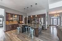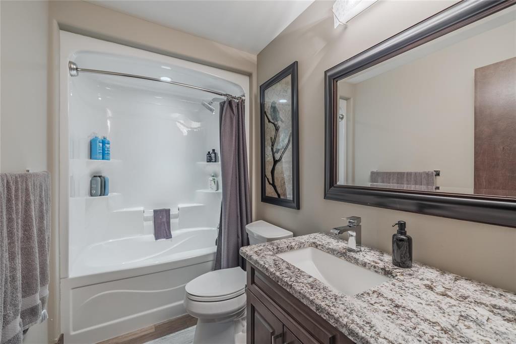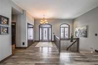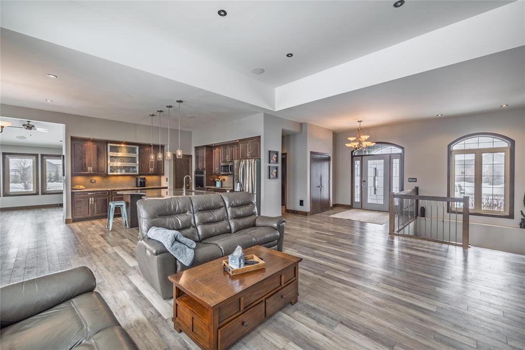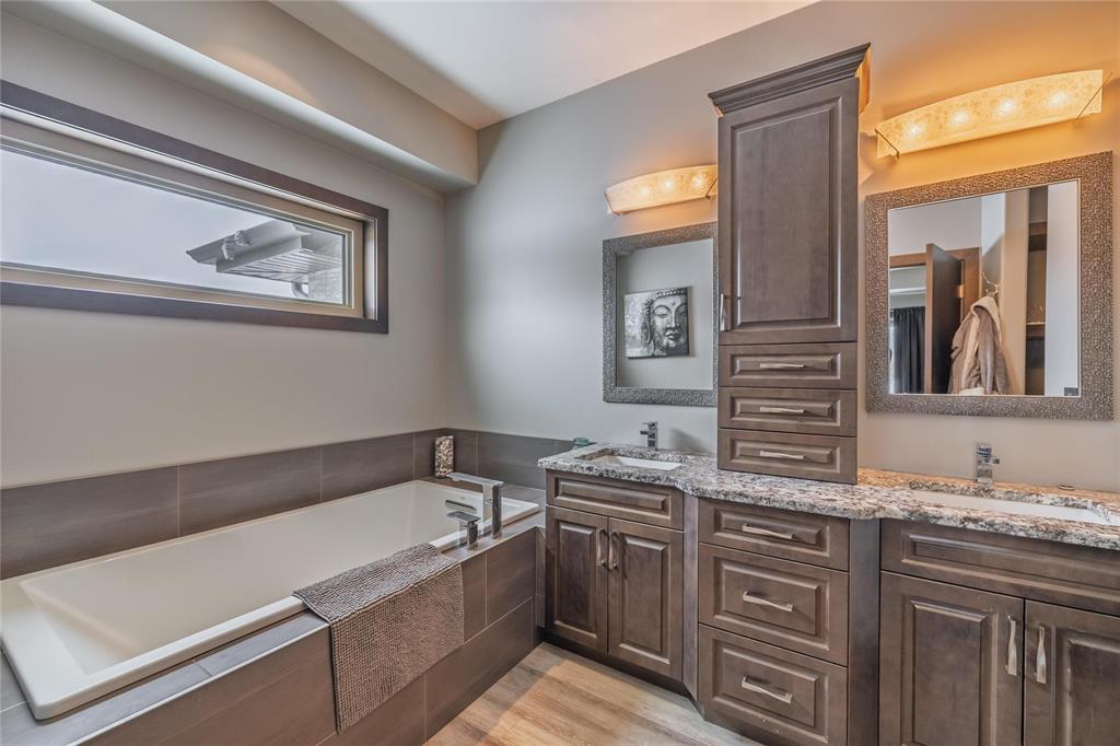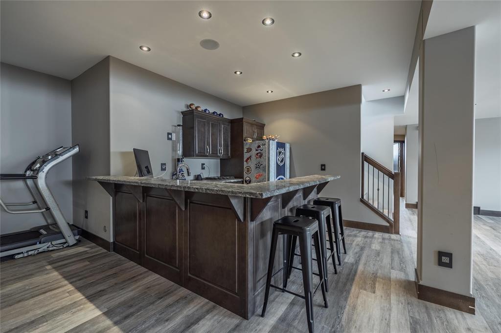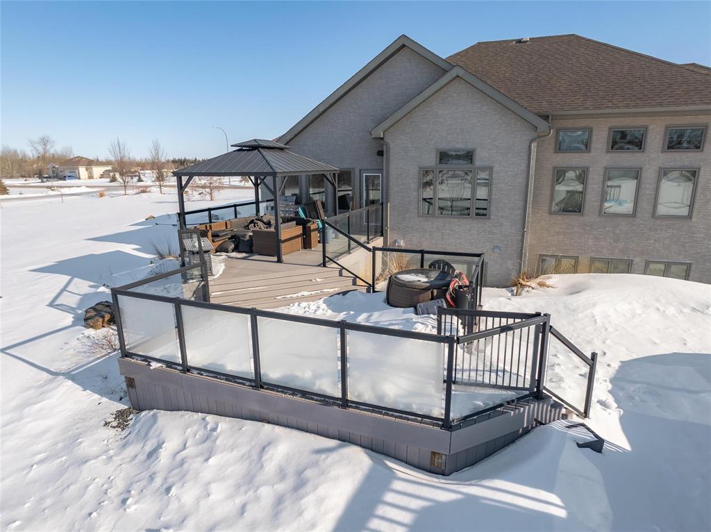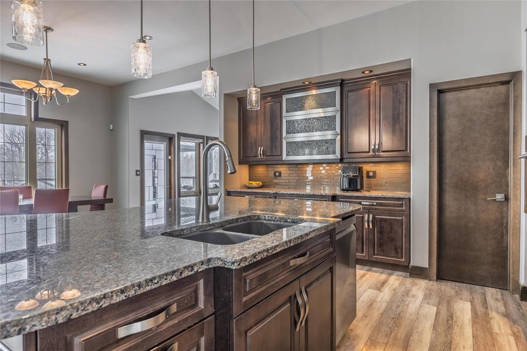 2617 square-foot bungalow, built in 2016, 1.38 acres – this is the complete package. Sprawling main floor w/ great room, 10-12’ ceilings, and gas fireplace onto modern kitchen, giant island w/ quartz tops, loads of storage and cabinetry, corner pantry, and stainless appliances! Adjacent dining area leads to sunroom w/ warm & sunny south facing windows and two-piece powder room. Principal bedroom has a 5pce ensuite w/ double sinks, air tub, and glass/tile shower. Three more terrific bedrooms on the main floor provide more than enough space! Main floor laundry and second full bath also upstairs. Finished lower level is fantastic! Open and spacious rec room w/ wet bar, games room, two more bedrooms, plus media room w/ projector, screen, and speakers included! Great storage space in utility room, w/ staircase up to attached 45x29 triple garage w/ in-floor heat, workbench, cabinetry, and electrical panel. Composite deck in south-facing back yard, above ground swimming pool, professional landscaping, and so much more. Dual gas furnaces, dual air conditioning units, house is equipped with Control-4. 400-amp service! Marathon HWT, HRV, steel beam, piles, and ICF construction.