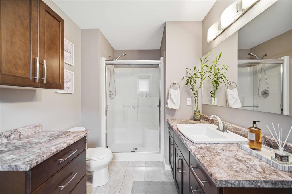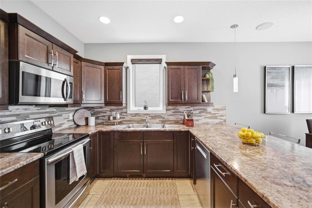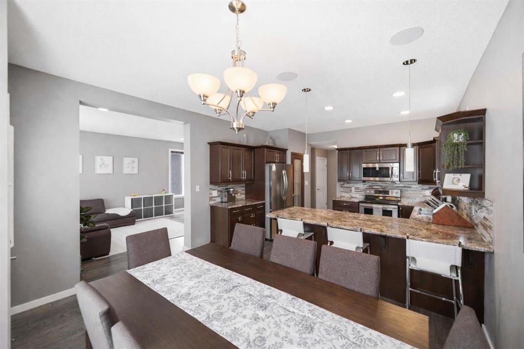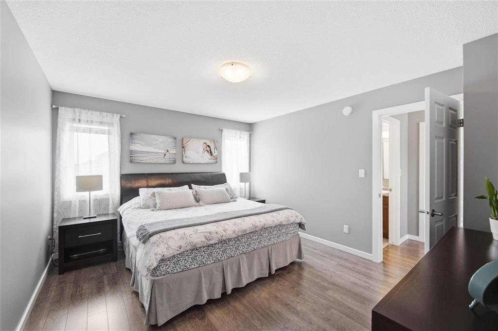 Open House April 4th, 2pm-4pm.Why build & wait when you can move in & enjoy this stunning home today! Welcome to this beautifully maintained home, built by Kensington & located in the desirable community of Canterbury Park. Designed for modern living, the main floor features a spacious living & dining area with a stylish built-in entertainment unit & laminate flooring flowing throughout the home, creating a warm and cohesive feel. The contemporary kitchen offers SS appliances, ample cabinetry, and great workspace, perfect for cooking, gathering, & entertaining. Upstairs you'll find 3 generous bedrooms, including a comfortable primary retreat with walk-in closet and ensuite.The fully finished basement expands your living space with a large rec room plus an additional room ideal for a 4th bedroom, gym, or office.Step outside to enjoy a beautifully landscaped backyard oasis featuring a deck and stamped concrete patio, perfect for summer BBQs and entertaining family and friends.Complete with a double attached garage and located close to schools, parks, shopping, and transit, this home offers the perfect blend of space, comfort, and convenience.This home is waiting for its next owners-book a showing today.
