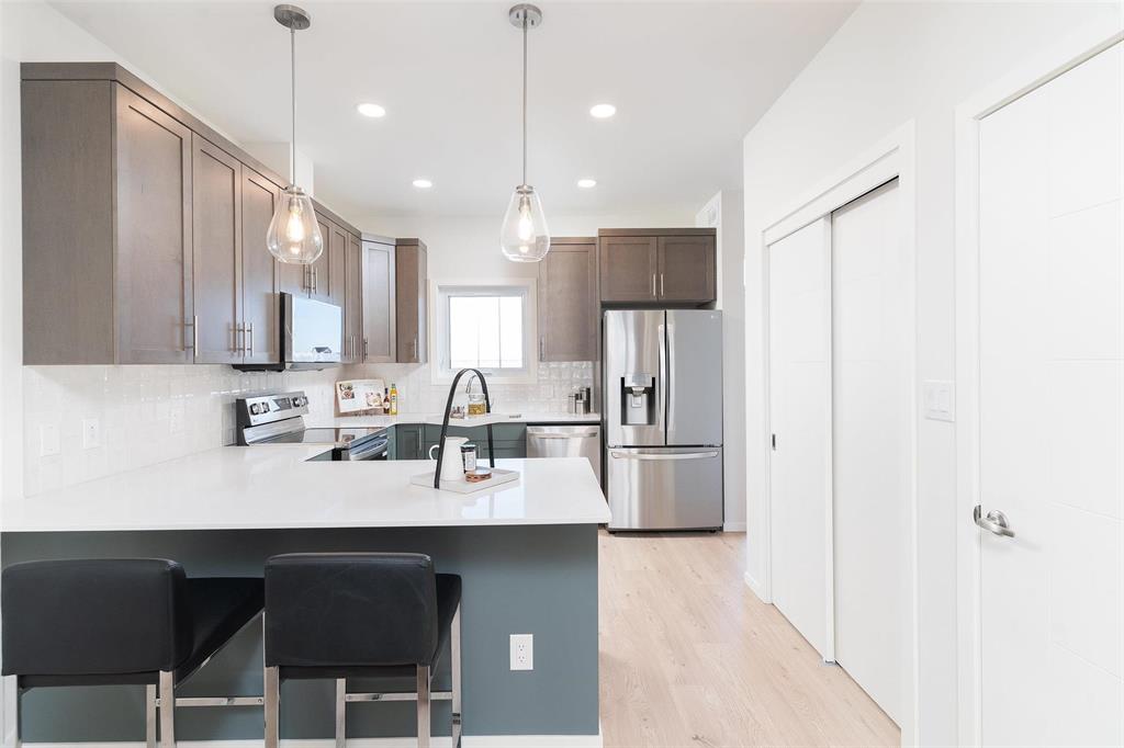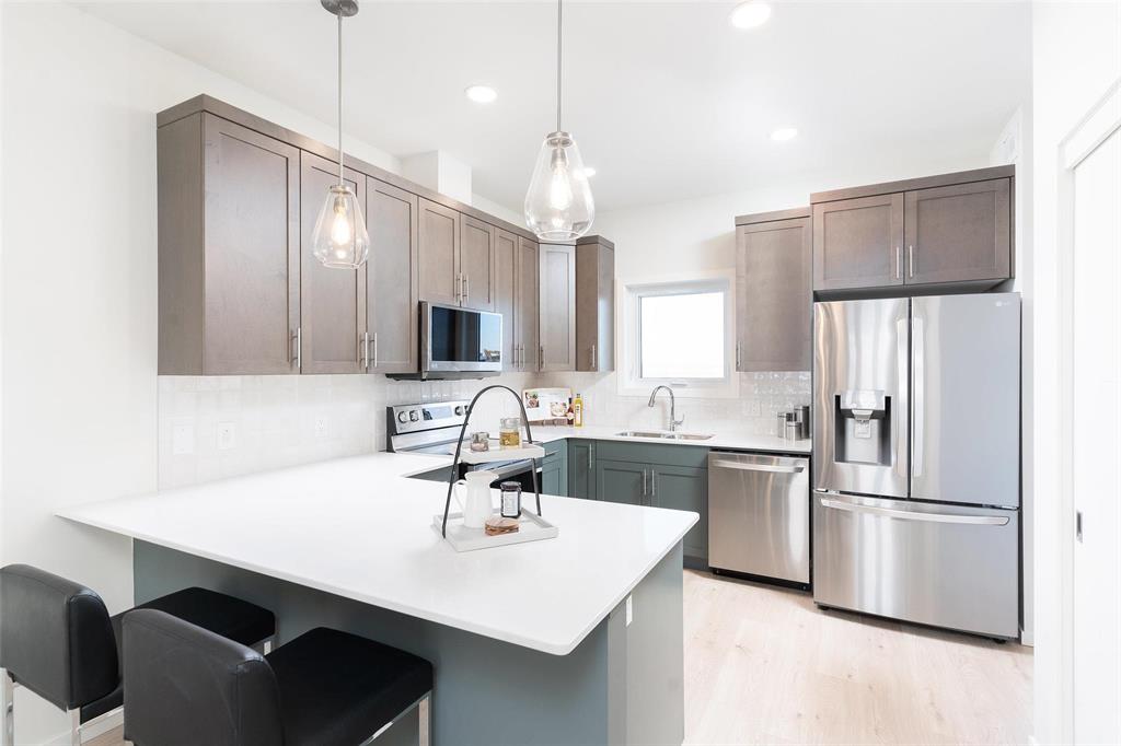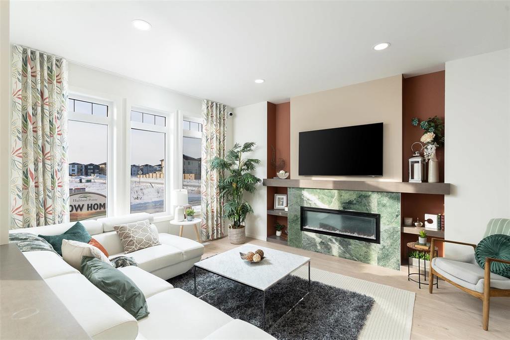 Open House Sat/Sun from 1:00-4:00 *** Quick Possession Available **"First-time buyer? You may qualify for a GST rebate & limited-time promo that could save you over $25,000. Contact to find out how it can work for you** The Belmont by A & S Homes, Show Home in Highland Pointe, featuring luxurious finishes throughout. This home is designed with both comfort and style in mind.The exterior boasts gorgeous landscaping, a spacious 20x20 concrete parking pad, and a side door entrance ideal for future suite potential. Inside, enjoy an open-concept layout with large front windows that bring in plenty of natural light. The main floor features a beautiful tiled-facing fireplace in the great room and a kitchen with an oversized peninsula-style island, stainless steel appliances, and a large pantry. Upgraded quartz countertops, tiled backsplash, and stylish laminate flooring enhance the home’s appeal. The dining room includes a built-in coffee bar, and the stunning upstairs laundry room offers a quartz countertop prep area with shelving. The basement has an extra laundry hookup and wet bar hookup for added convenience. Upstairs, you’ll find 3 spacious bedrooms, including an upgraded ensuite with 2 full bathrooms.