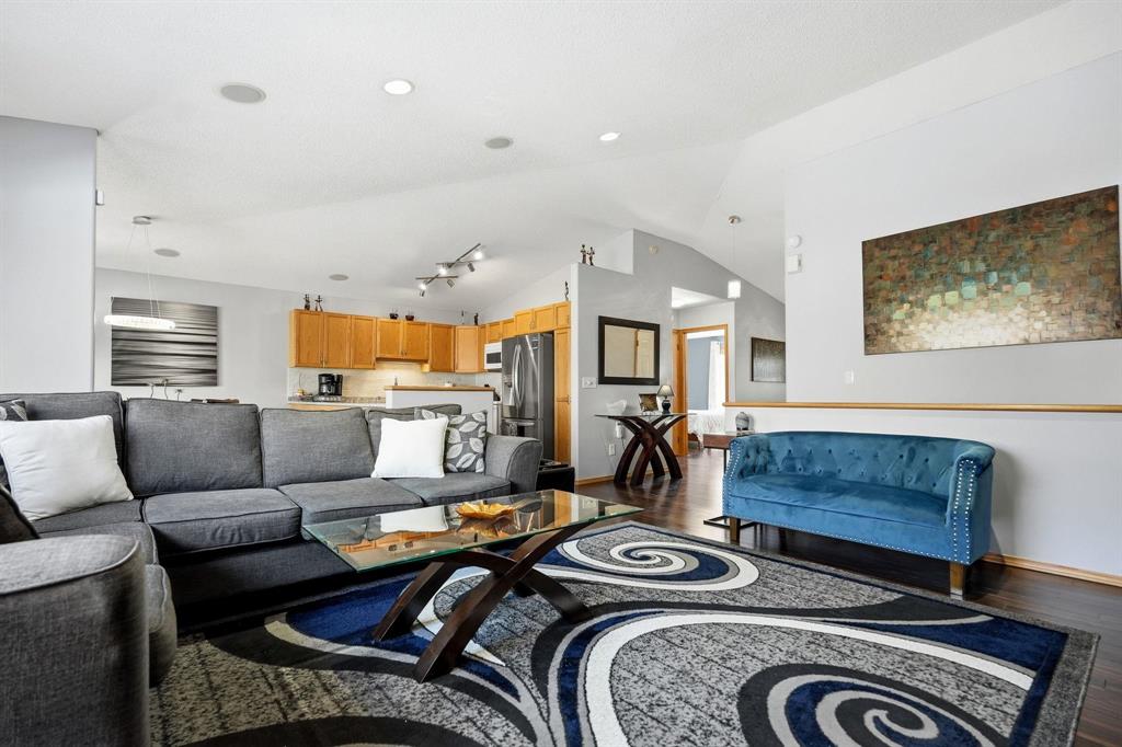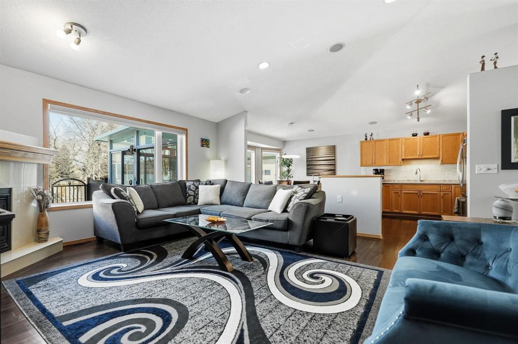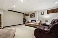 Home comes outfitted w/main-floor surround sound system, most lighting+blinds-'21, Large Primary Bedroom with walk-in closet & 4-piece Ensuite with Jetted tub. Main-floor laundry & storage. 2nd Main-flr Bedroom, Main bath features a Pharo by Hansgrobe multi-head shower. Lower Level fully finished, Impressive Recroom (Negotiable: American-Heritage-Bar & Hutch, Overhead projector+screen & surround system) the Gym & Storage room is currently staged as Bedrooms, L-shaped hobby room, 4-piece Bathroom has steam shower, built-in Cental-Vac. Note: all measurements are +-Jogs,
