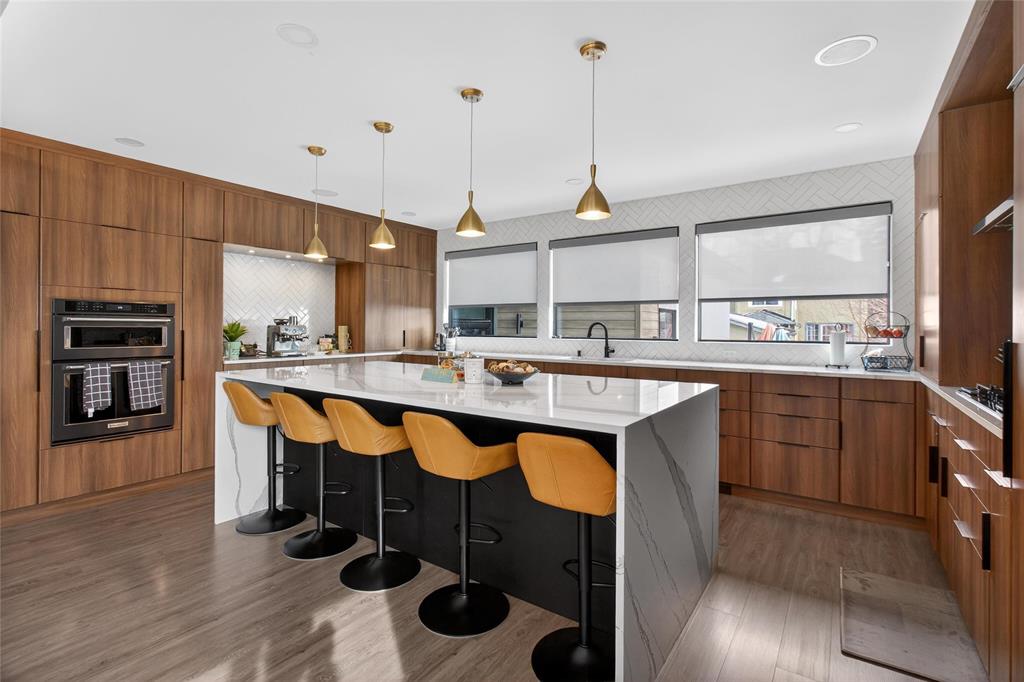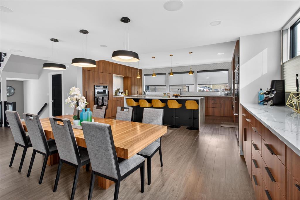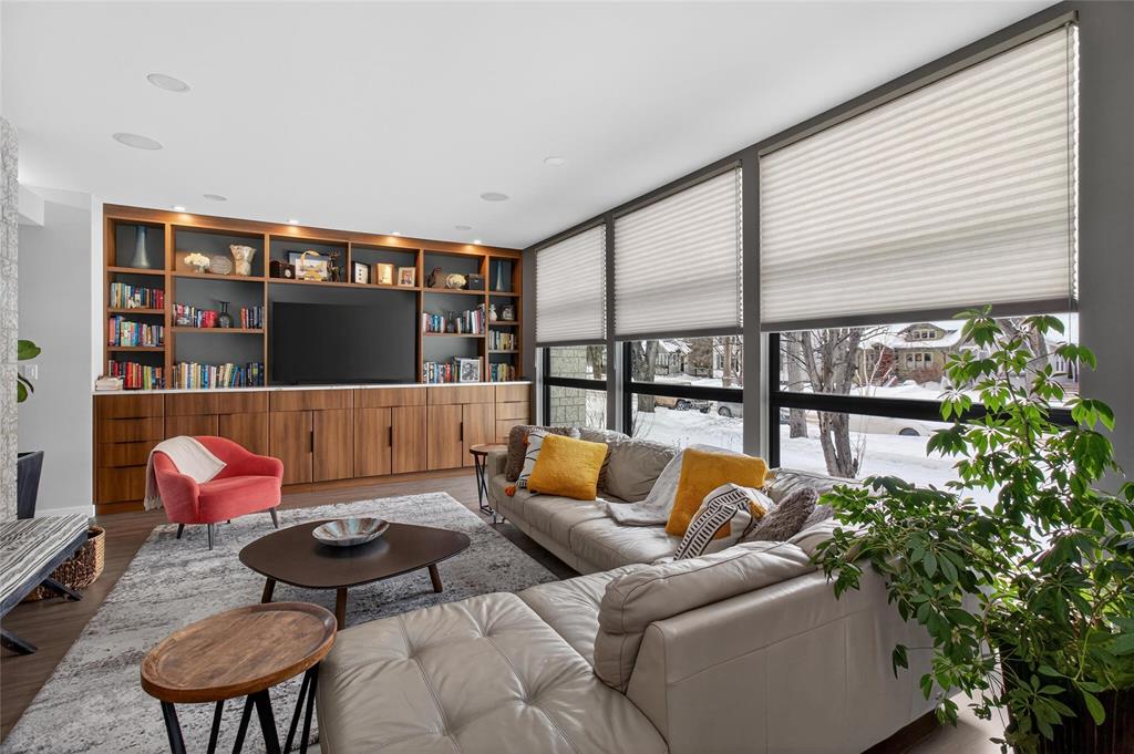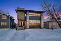 Custom built two-story in the heart of River Heights offers over 2,800 sq ft of architecturally designed living space. A spacious foyer welcomes you into the stunning living room where floor to ceiling windows fill the space with natural light and a striking double sided gas fireplace finished in Tyndall stone creates a warm atmosphere. Custom millwork & built-in cabinetry throughout provide both elegance and exceptional storage, complemented by LVP flooring. The dining area flows seamlessly into stunning kitchen featuring a large peninsula island, built-in appliances, and a gas range, every cook’s dream! A spacious mudroom & laundry area with built-in cabinetry, laundry sink, and direct backyard and garage access completes the main floor. Upstairs offers 4 spacious bedrooms, a full bath, & a private primary retreat with walk-in closet and spa like ensuite featuring a steam shower, deep soaker tub, and built-in surround sound. The finished lower level adds a large rec room, 2 more bedrooms, den, & a 3 pc bath. Complete with a double attached garage, this exceptional River Heights home offers refined living in a premier location.