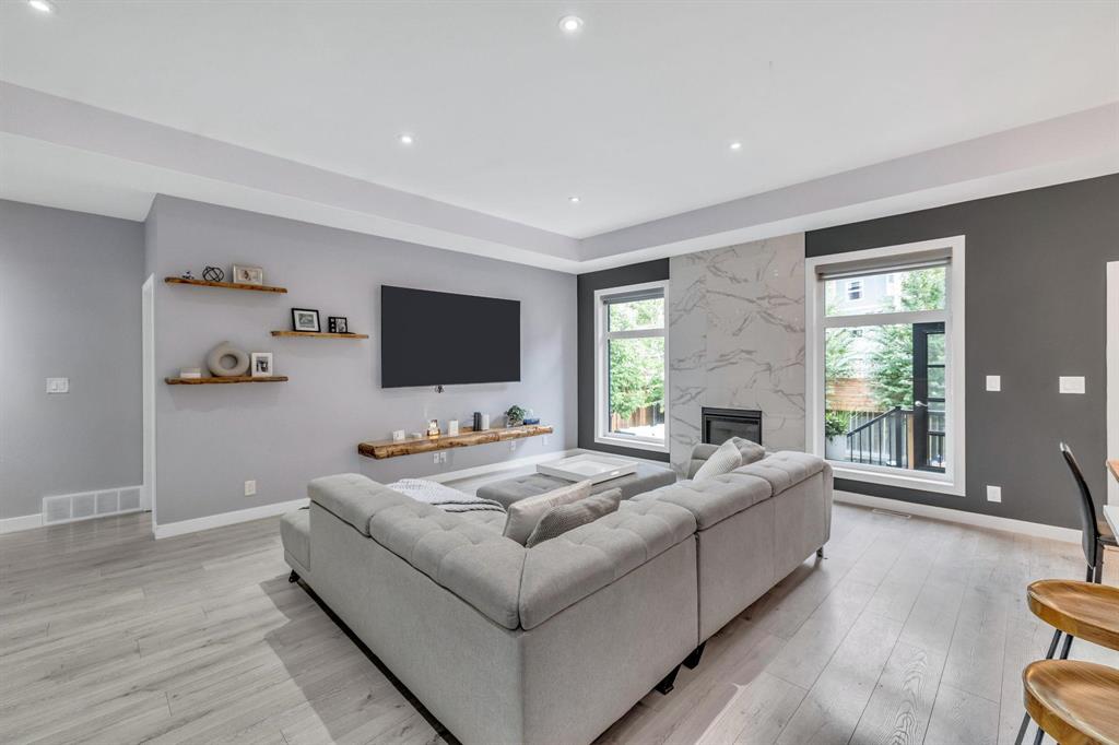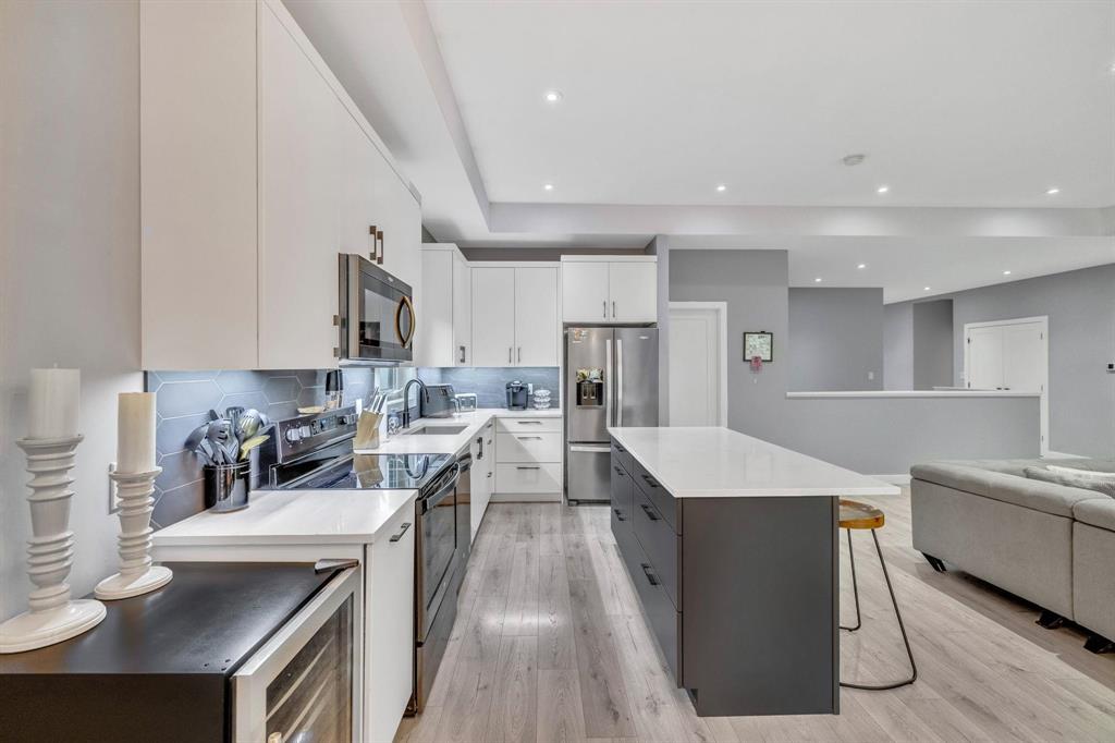 SS Thurs March 19th. Welcome to Unit 5 at Creek Bend Hollow, a sought after gated community where luxury meets low-maintenance living. This 1,564 SF detached bungalow style condo offers the perfect blend of elegance and ease. Enjoy high-end finishes, an open-concept layout, chef's style kitchen W/ massive island & quartz countertops, white cabinetry & SS appliances, cozy living room with marble gas fireplace & a spa-like en suite retreat W/ soaker tub and WIC off the primary. The professionally finished lower level (all permits pulled) includes 5pce bathroom with a steam shower for your own at-home wellness experience, a massive rec room & 2 additional bedrooms perfect for those out of town guests or home office. Surrounded by mature trees, the professionally landscaped yard, sunroom, and composite deck offer peaceful outdoor living. An oversized double garage with high ceilings, leading to a polished mudroom with main floor laundry & ample storage, this home combines comfort, style, and convenience. This unit has tons of storage from mudroom, under stair storage & built in above garage shelving. Ideal for those seeking serenity without sacrifice, a rare opportunity in a sought-after, secure setting.