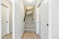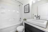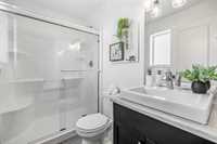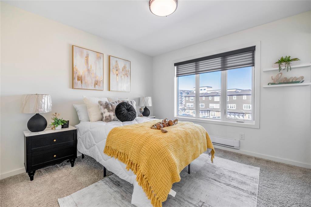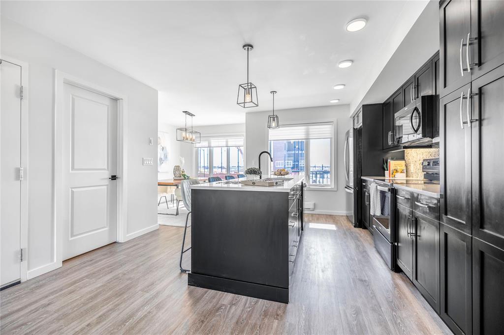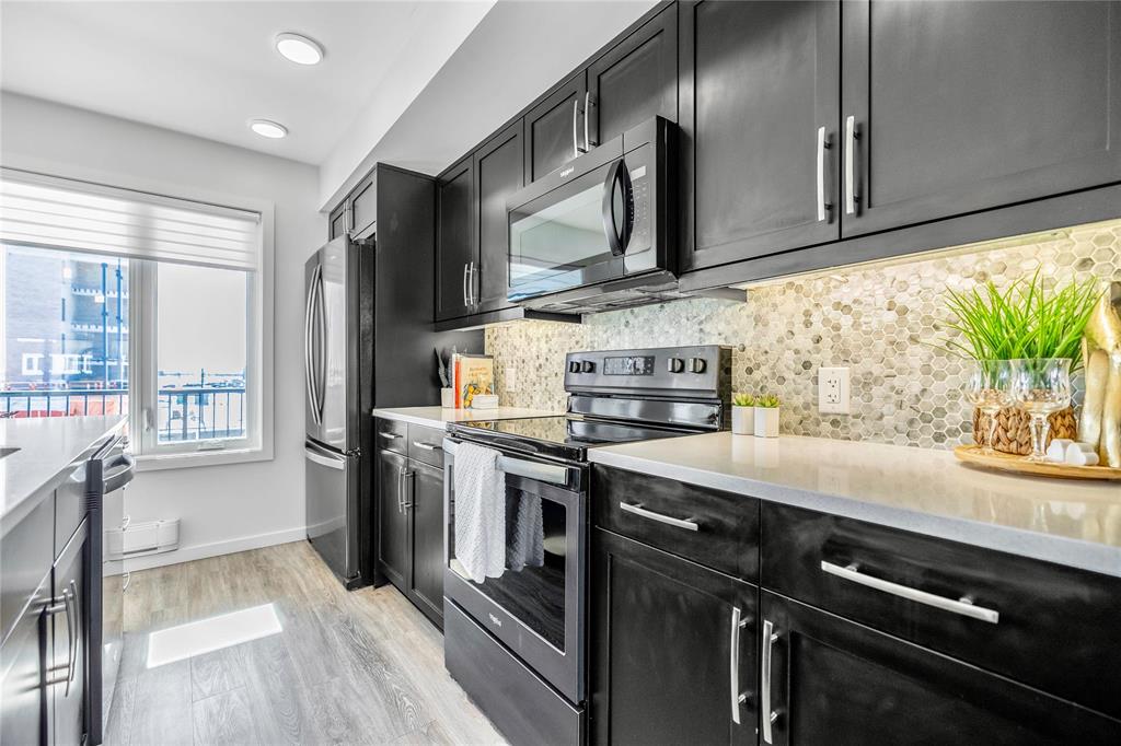 Showing starts now. Offers as received. Welcome to this beautiful 3-bedroom, 2.5-bath townhouse offering 1,262 sq ft in the highly desirable Bridgwater Centre. This bright unit features an open-concept layout with large windows bringing in plenty of natural light. The modern kitchen is equipped with quartz countertops, backsplash, black cabinetry, built-in microwave and matching black appliances, creating a sleek contemporary look. Spacious living and dining area plus a convenient powder room complete the main floor. Enjoy the private balcony perfect for summer BBQs. The upper level offers cozy carpet flooring, a generous primary bedroom with walk-in closet and 3-piece ensuite, two additional bedrooms, a full bath, and newer washer and dryer. Rare TWO COVERED parking stalls (#132 & #133) just steps from the unit — no snow shoveling required in winter, adding extra convenience and value. Pet-friendly complex with low condo fees including water.Fantastic location within walking distance to Altea Active, Save-On-Foods, banks, restaurants, transit and walking trails. Move-in ready — book your showing today!