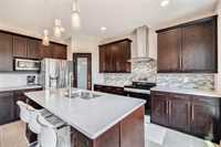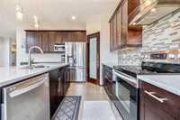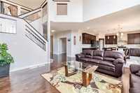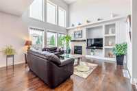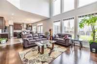 OPEN HOUSE SUN(Mar 29) 2-4PM. Offers as received. Welcome to this stunning 2-storey home on a quiet street. It offers 2340sf of impeccable, luxurious & modern living space meticulously upgraded with high-end finishes & thoughtful details. Going through front porch, you are greeted with a wide welcome foyer, spacious living room & multiple functional Den. Natural light pours into main floor, highlighting the soaring 18’ high ceiling, open layout great room centered around cozy entertainment & fireplace. The spacious open-concept kitchen has big picture window, maple cabinetry, large quartz countertops island, pendant lighting, walk-in pantry & SS appliances. The main level features wall to wall high-quality maple hardwood floor & appealing ceramic tile. Upstairs there are 3 large bedrooms & an open loft, the huge primary bedroom has a deluxe ensuite with corner jetted bathtub & walk-in closet. The basement is tremendously spacious with 5 bright egress windows, offering freedom to develop. The sun-drenched huge backyard offers a customized deck & wild green space with flowers & fruit trees. Close to public transportation, schools, trails & playgrounds. Schedule a private showing now
