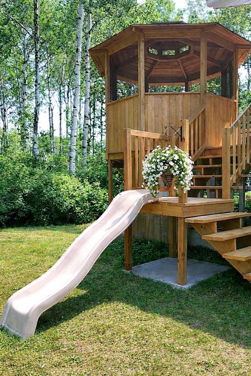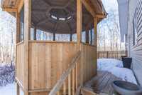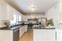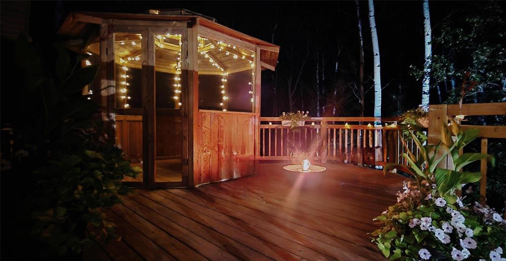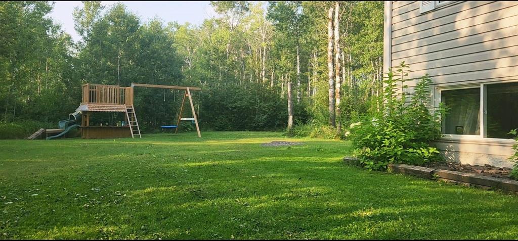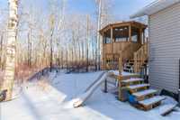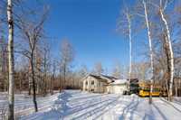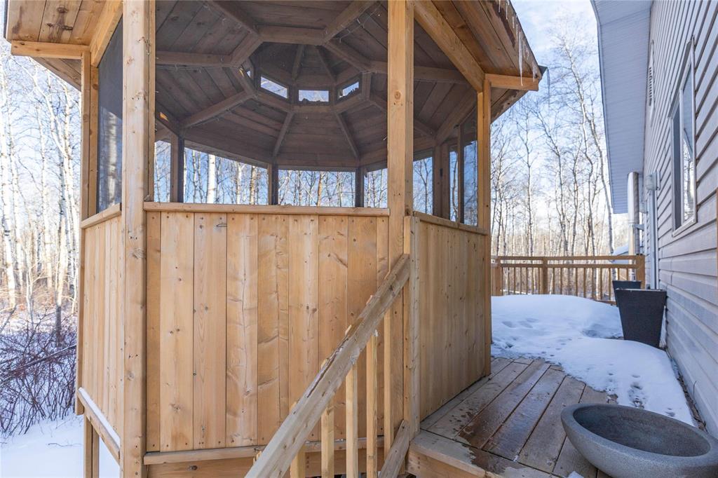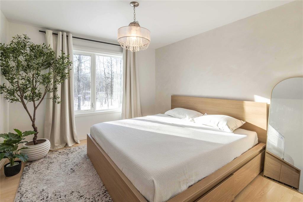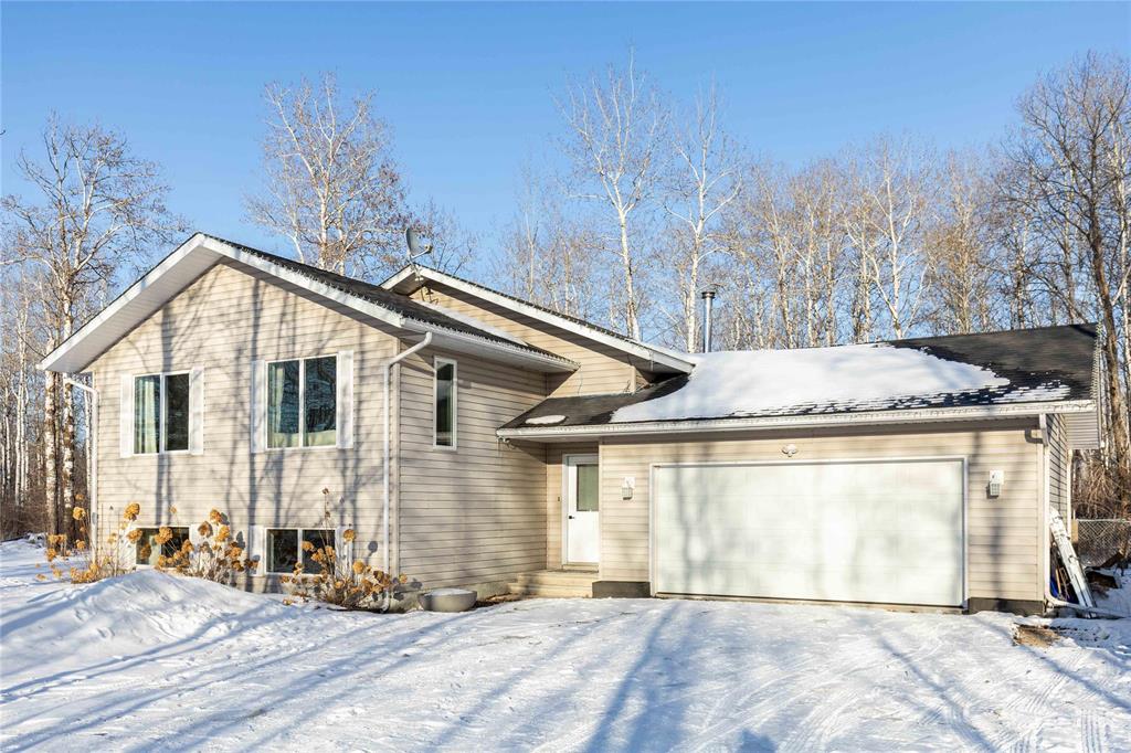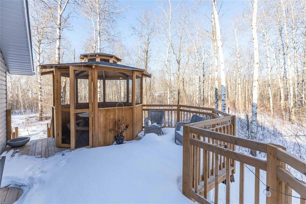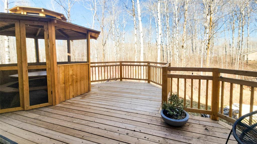 Elegant and beautifully maintained 4 bedroom, 2 bathroom home set on nearly 2 acres of private, picturesque land. The stunning kitchen is a true highlight, featuring white shaker-style cabinets, tile backsplash, pristine stainless steel appliances and a spacious island. The dining area is enhanced by a striking feature wall and patio doors leading to the deck, creating a seamless connection to outdoor living. The inviting living room offers an elegant atmosphere with a cozy fireplace as its focal point. The main level hosts 2 bright bedrooms and a 4 pc bathroom. Downstairs, the lower level offers 2 spacious bedrooms, family room with wood stove and large 4 pc bathroom with jetted tub. Unique design details throughout add charm and character to this exceptional property. Step outside and enjoy your own private summer retreat. The raised deck and gazebo offer the perfect place to relax or entertain, overlooking a beautifully treed backyard framed by mature birch trees. With almost 2 acres, this property offers exceptional privacy, peaceful surroundings and the perfect blend of country-style living & comfort.