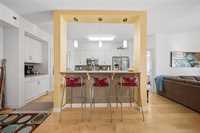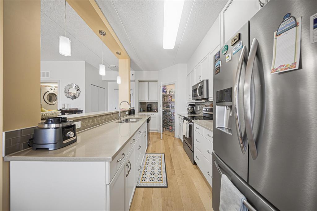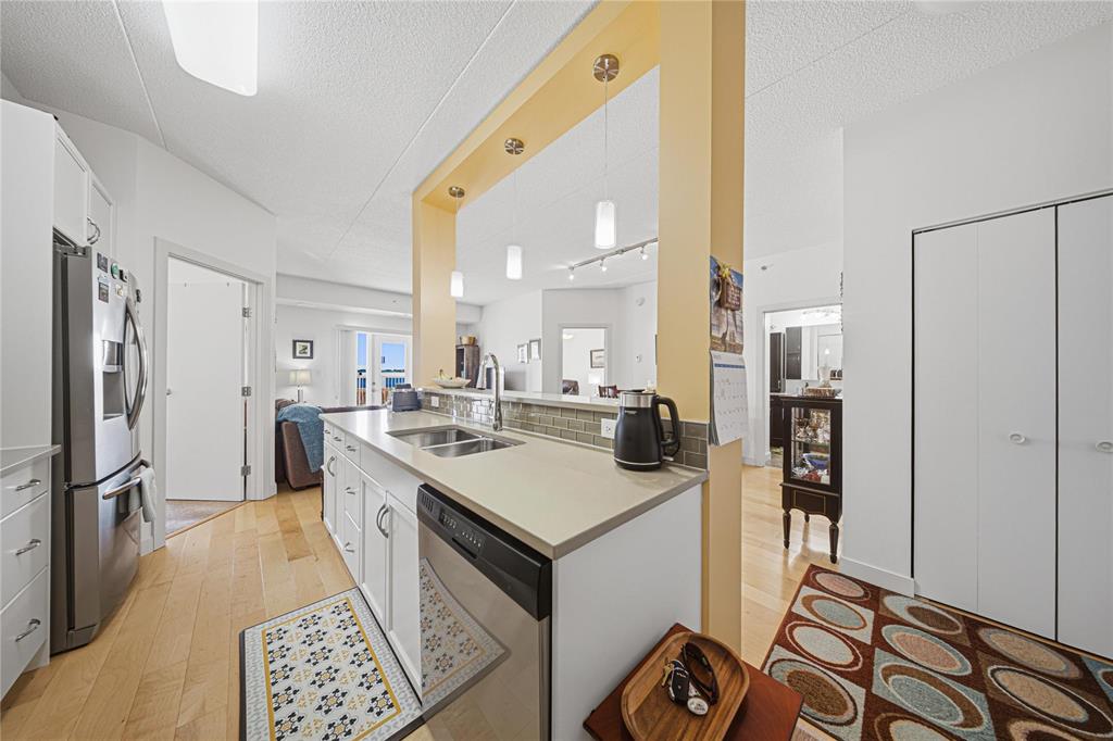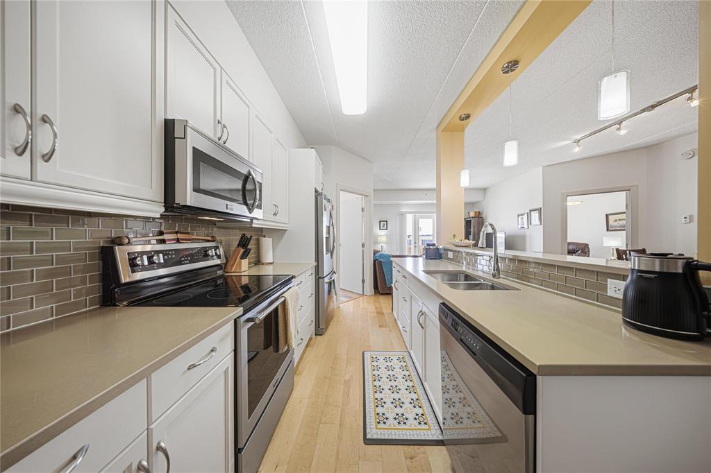 S/S Wed Mar 18, offers as received. Bathed in natural light, step into stylish, carefree living in this beautiful South East-facing ste featuring a spectacular raised terrace—perfect for morning coffee, evening wine, & everything in between! This spacious freshly painted Condo offers 2 br's, each with wicc, & 2 well-appointed baths. Enjoy the convenience of in-ste laundry, engineered hwds, & a high-end appliance package incl nwr stove. The gourmet kit features an o/s pantry, engineered quartz countertops, under-cab lighting, pot drawers, & a breakfast bar. The dining area easily accommodates larger gatherings, while the inviting lr opens directly onto the 16 x 40 terrace, complete with a gate & walk-out access to the beautifully maintained grounds. This concrete & steel building offers outstanding amenities, including 2 elevators, htd indoor parking, & a private storage locker conveniently located on the parkade level. Residents also enjoy access to a fitness & common area w/kitchenette, 2-piece bath, & terrace access—perfect for hosting summer gatherings. A rare opportunity to enjoy sophisticated condo living in a welcoming, well-maintained building. Close to transit, shopping & all amenities