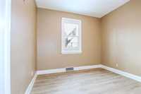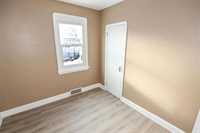 Step inside this freshly updated home on a double wide lot. Featuring new plank flooring throughout and professionally painted, well patched lath-and-plaster walls that give the space a clean, modern feel. The brand-new kitchen offers fresh cabinetry and new tile flooring, providing a bright and functional layout ready for your choice of appliances. The bathroom has been tastefully refreshed with tiled walls, an updated vanity, and a cleaned and upgraded tub, creating a neat, contemporary look. New lighting has been added throughout elevating the home's warmth and brightness. The basement is unfinished but has been fully cleaned, dry, and excellent condition - ideal for storage or future development. Overall, the home shows straight, solid, and true, offering buyers confidence in its structure and the quality of recent improvements. A perfect opportunity for those seeking a move-in ready space with essential upgrades already completed. Zoned R2.