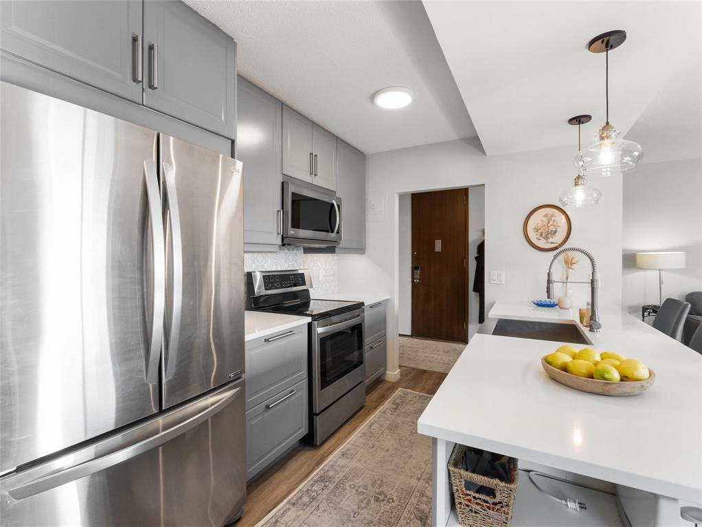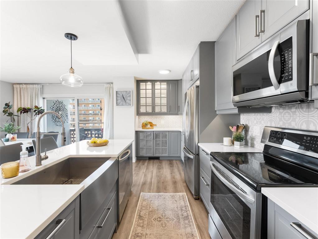 OH Sat. 1:30-3:00 Offers as received. SUNSHINY DAYS! Welcome into this bright, open & updated unit on a cozy, quiet street in Osborne Village. The spacious entryway flows into the bright, open kitchen including all SS appliances, quartz counters & a SS oversized farmhouse sink (2017). Durable vinyl plank flooring flows through the entire space. The brightly lit bathroom has a Bath Fitter tub, ceramic tile surround & glass doors. The small mirrored cabinet adds some extra storage. The 2 large bedrooms each have large storage closets & plenty of room for a king sized bed. The hallway also has a large floor to ceiling closet for all your storage needs. The building is non-smoking throughout & Pet friendly. Larger dogs may require board approval. U/G heated parking will be your favorite amenity on those cold or rainy days. Available at $60/mth & 2nd spots may be available. There is also a bike locker in this space. The Roof Top heated pool is an Oasis of calm to relax & unwind on a hot summer day. It feels like living at a resort. This neighborhood has so much activity right nearby from grocery stores, liquor & drug stores, cool coffee shops & some of the city's best restaurants. Just move in & enjoy.