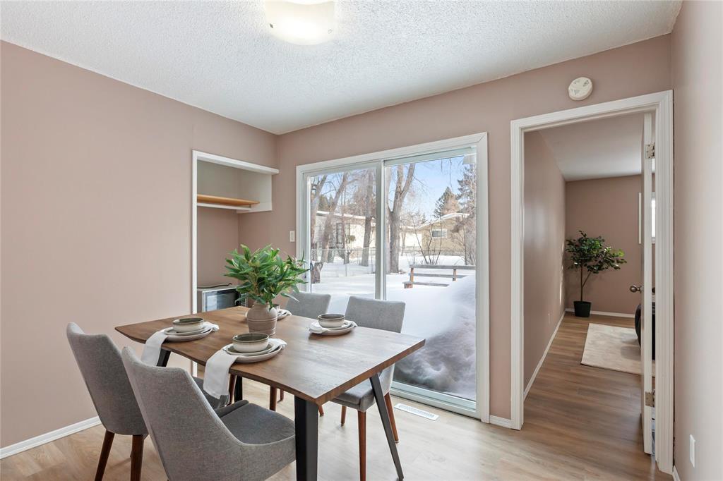 S/S now. Offer as received. Vendor has never lived in the property. Property sold as is. Welcome to this beautifully upgraded 1,083 sq/ft bungalow located in the highly desirable Fort Richmond area, just a short walk to all levels of schools, including the U of M. This property offers an ideal opportunity for families seeking comfort and convenience, as well as investors looking for strong income potential. This home features 5 BR & 2 full baths. The main floor boasts a bright living room, 3 well-sized BR, a full bathroom, a functional kitchen, dining area, & the convenience main floor laundry. The fully finished basement adds exceptional value, offering a separate entrance, two additional BR with legal egress windows, a full bathroom, a generous recreation room, Wet bar & a large utility/laundry area, perfect for extended family living or rental potential. Addition are single attached garage & a fully fenced backyard & a garden shed. Upgrades: Backyard Deck (2017),Central A/C (2020),Washer & Dryer (2026),LVP Flooring (2026),Interior Paint (2026),Wet Bar (2026). Beautiful home - an opportunity not to miss. Book your private showing today!