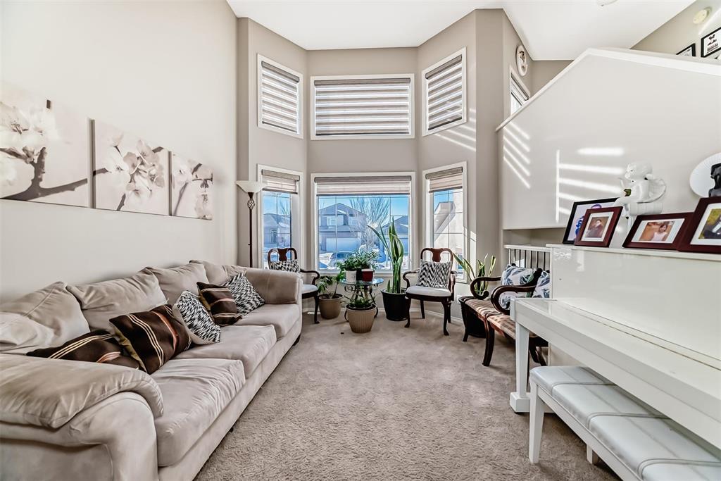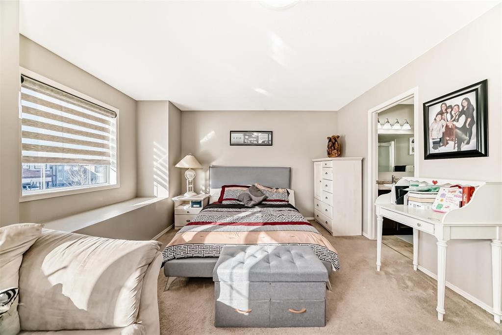 Showing starts now with offer date of 24th Mar, 5:00 PM. All measurement +/- jogs. Open House on 21st and 22nd Mar 1:00pm- 3:00 Pm. Welcome to this stunning 2140 sqft two-storey Kensington home in the highly desirable Amber Trail community! Featuring a fantastic floor plan, this home offers 5 bedrooms and 2.5 baths, perfect for growing families. The main floor boasts an open-to-below living area, a spacious family room for gatherings, and a versatile bedroom/office. Enjoy the open-concept kitchen with dinette, ideal for everyday living and entertaining guests. Upstairs features a huge primary bedroom with ensuite 4 piece washroom and walk-in closet, along with generous-sized bedrooms and ample storage throughout. Step outside to a finished backyard complete with deck and patio, perfect for relaxing or hosting parties. Located on one of the most sought-after streets in Amber Trail, close to parks, playgrounds, schools, shopping, and transit. Unfinished basement with huge windows and rough-ins offers a great opportunity for future development. A home that truly checks all the boxes—don’t miss this one!