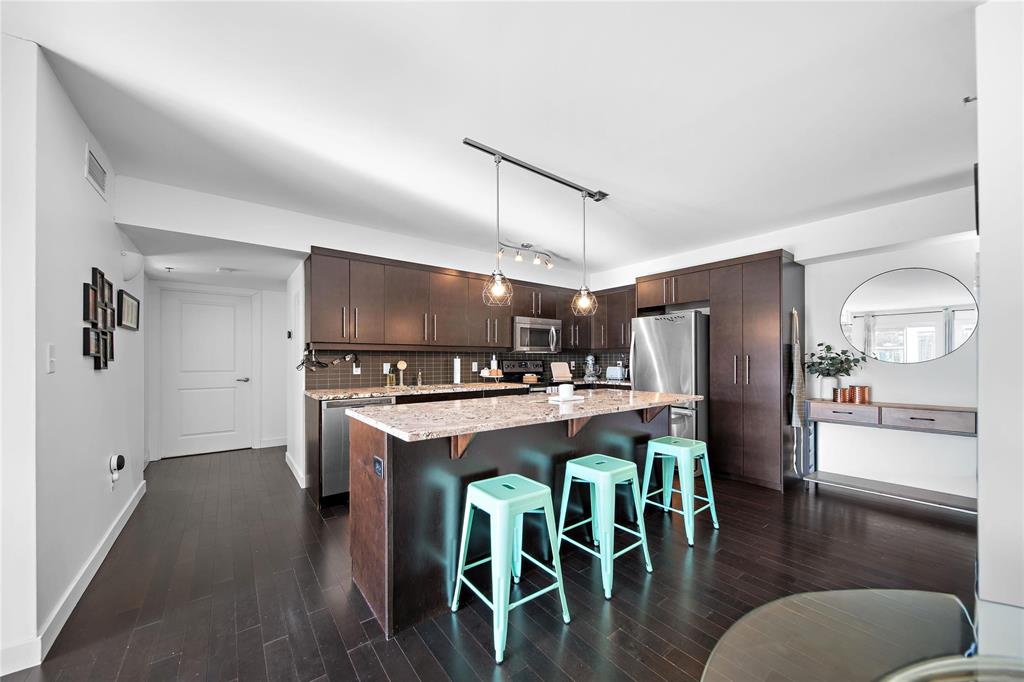 Welcome to #307-235 Bridgeland Drive S in the thriving Bridgwater Forest area of Winnipeg! This 1016 SF 2 bed, 1 bath luxury condo is on the top floor & close to all amenities such as schools, parks, public transportation, & the U of M! You will love the open concept kitchen with plenty of cabinet space with large island & granite countertops! One of my favourite things about this condo is the cozy living room area with built in entertainment unit & electric fireplace which is a great place to relax & unwind after a hard days work! Down the hall are the 2 bedrooms & full 4pc bath! A few other great features include: in-suite laundry, additional storage room, South facing balcony (with additional storage), stainless steel appliances, covered parking stall close to front entrance near elevator, gym facility access & multi purpose room on 2nd floor available to reserve! Book your showing today!