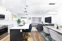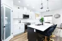 Step inside to discover a bright and inviting open-concept main floor, designed for both everyday living and entertaining. The spacious living room features large windows that flood the space with natural light, while the elegant flooring and contemporary finishes create a warm and sophisticated atmosphere. The chef-inspired kitchen is a true highlight, complete with upgraded cabinetry, countertops, a large island, and stainless steel appliances—perfect for hosting and family gatherings. A generous dining area and convenient laundry room complete the main level. Upstairs are 3 large bedrooms, including a luxurious ensuite primary bedroom with a large walk-in closet. Two additional B/R offer ample space for family, guests, or a home office, along with a full modern bathroom and convenient , lots of upgrades in this 3yrs old house!