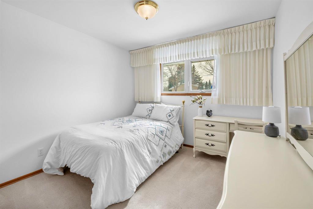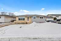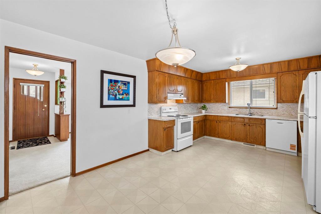 S/S Wed. Mar. 25, offers presented Tues. Mar. 31 after 6 pm. Mint condition & impeccably maintained, this straight & solid bungalow in the Maples is the perfect family home, ideally located close to schools, parks, community centre & public transit. The expansive eat-in kitchen offers plenty of counter space & cabinetry, along with a newer dishwasher, making it both functional & inviting. A bright living room w/carpeting provides a comfortable space to relax, while a pocket door leads to the hallway & three main floor bedrooms, all with hardwood floors beneath the carpet. A 4-piece bath completes the main level. The finished basement adds excellent living space with a games area, spacious rec room w/custom dry bar, a fourth bedroom or office & a large laundry room w/convenient 2-piece bath & abundant storage. Outside, enjoy the large yard with patio...perfect for entertaining or family time. Notable updates include house & garage shingles (2021-2020), HEF (2018), HWT (2016), as well as updated windows, eaves, soffits & fascia. Additional features include central air conditioning and sump pump. Oversize double detached garage with extended driveway. Outstanding value & move-in ready!
