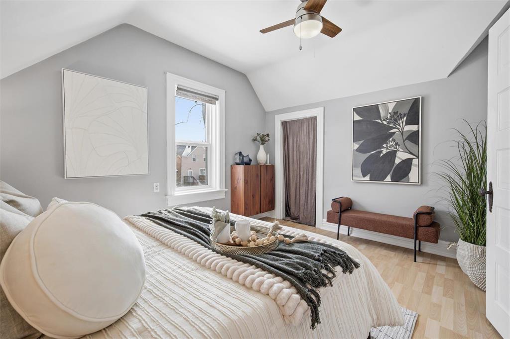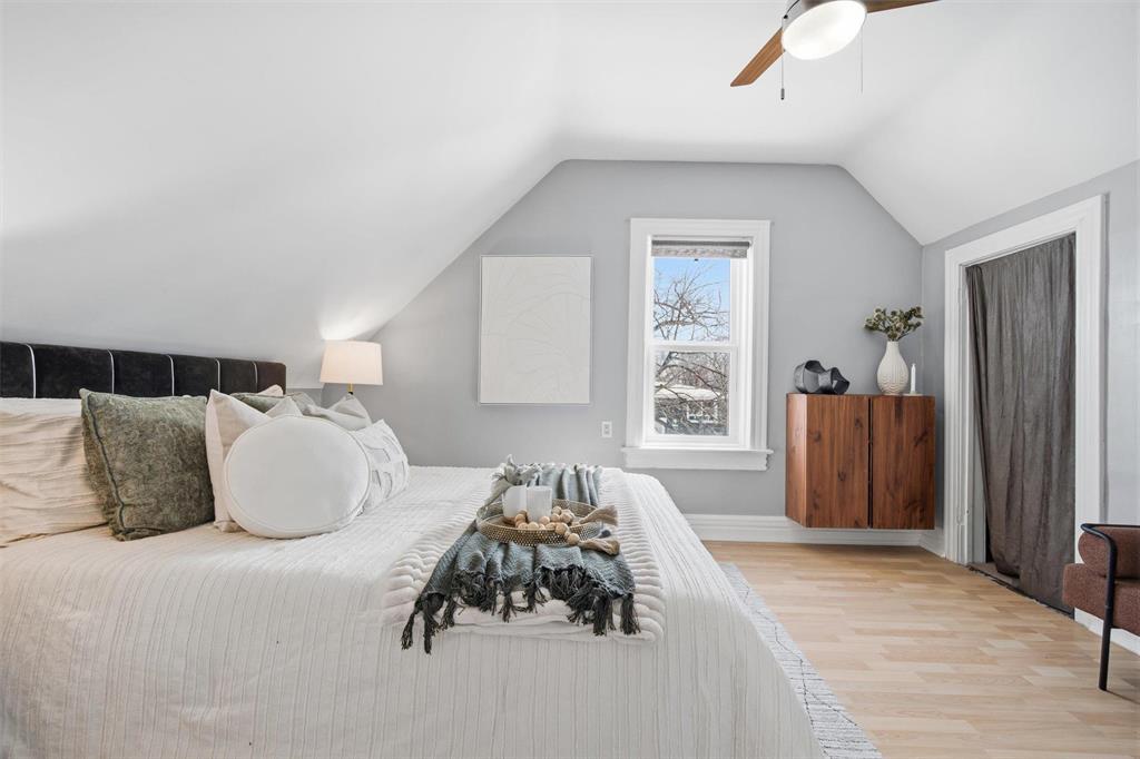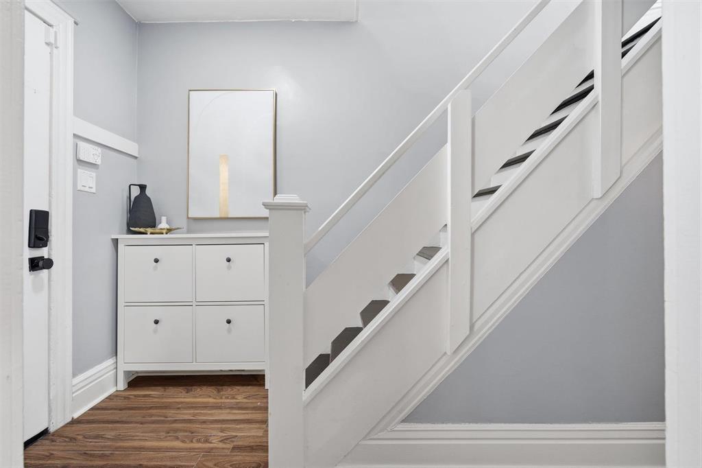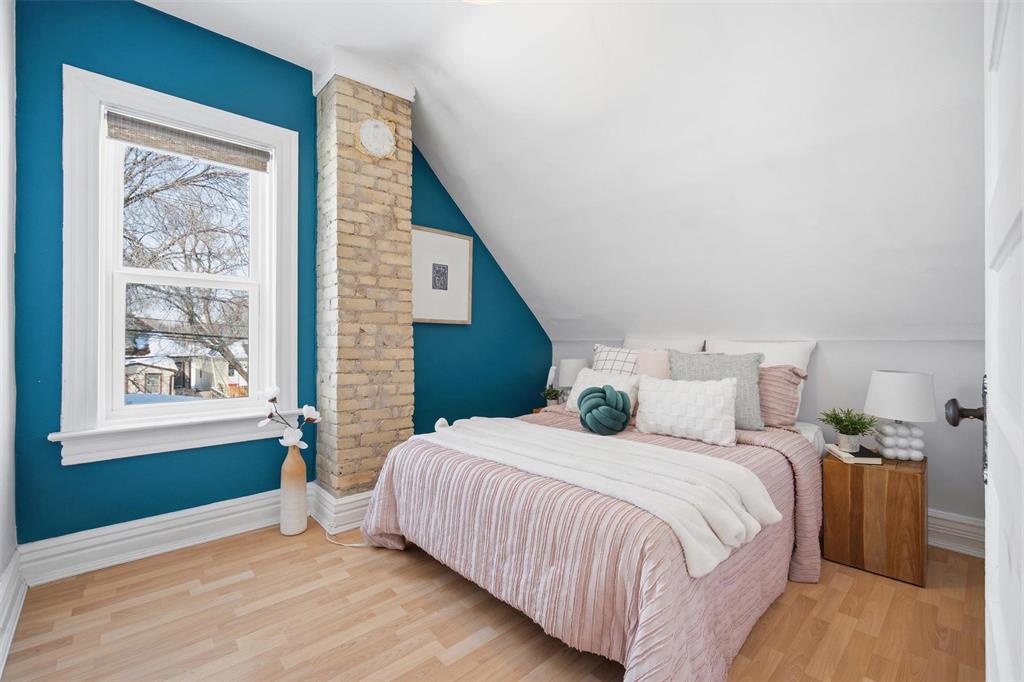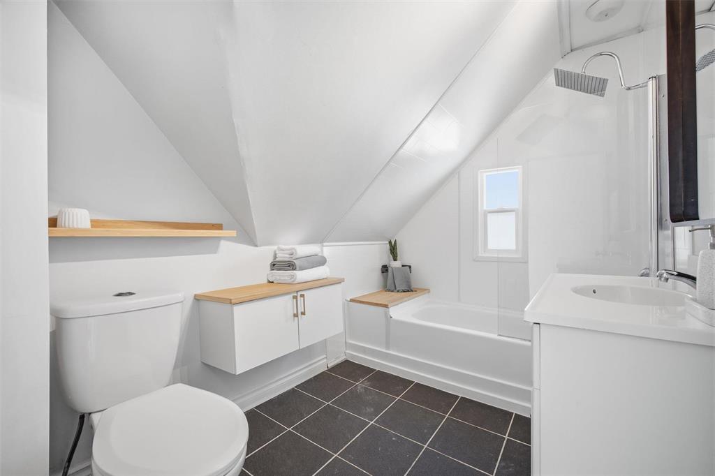 Upstairs you’ll find two bedrooms and an updated 4-piece bathroom with tile flooring and storage.