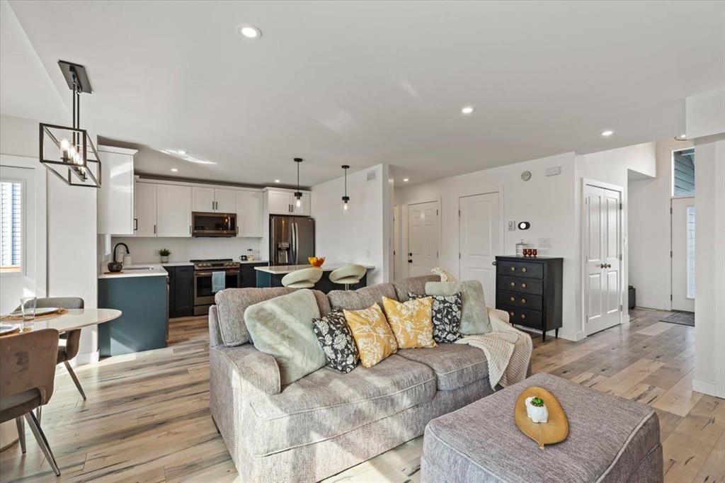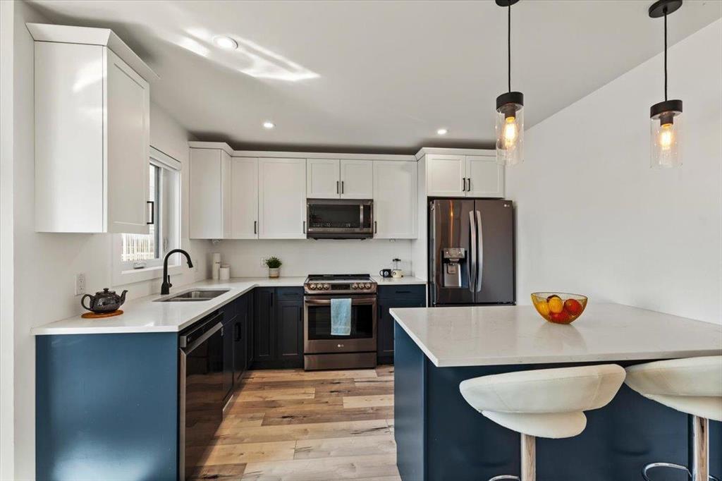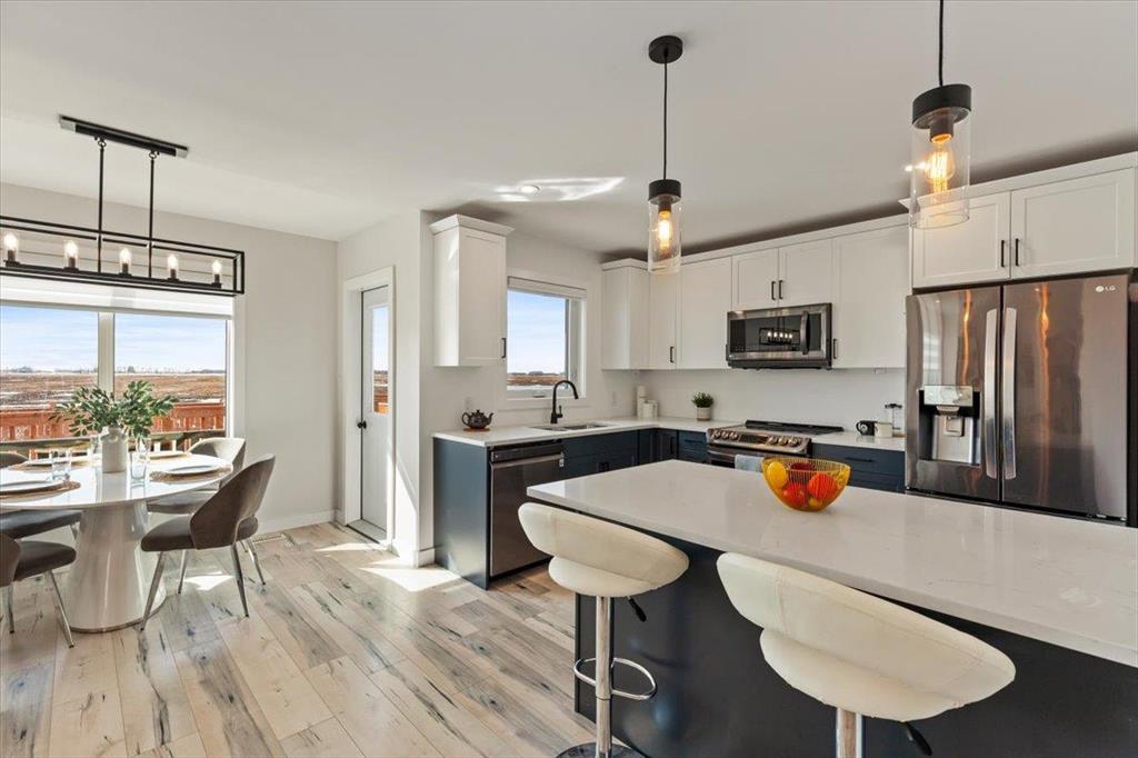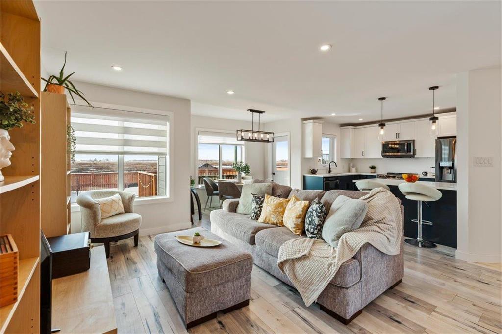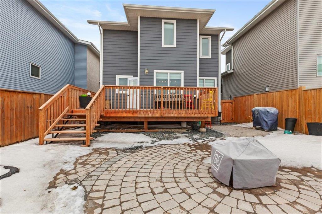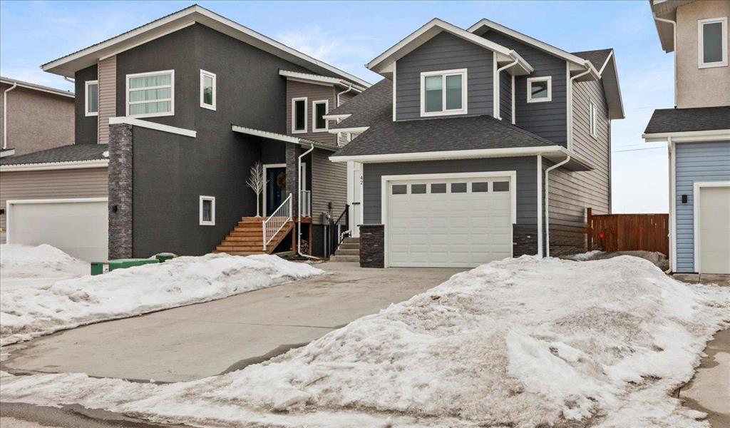 Fantastic opportunity to purchase a beautiful 3 bedroom, 2.5 bathroom home in 5th Avenue Estates! The main floor of this home features open concept living room, dining room, kitchen and has a half bath. The kitchen has soft close, 2 tone cabinetry with quartz countertops. Fantastic stainless steel appliances are included. Check out the view of the deck and no backyard neighbours! Moving upstairs you will find 3 large bedrooms, laundry & a full bathroom. The primary bedroom has a full bathroom, walk in closet and nook for extra storage. The lower level is partially finished with drywall, and a possibility for 4th bedroom, and additional bathroom. AC. There is an attached insulated garage with 220v plug. Moving outside, have a look at the fenced yard, finished deck and beautiful landscaping! Sheds are included. Paved driveway. Possession is flexible, quick possession available if needed. Hurry, don't miss out!!