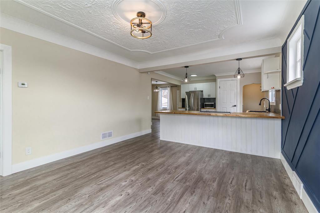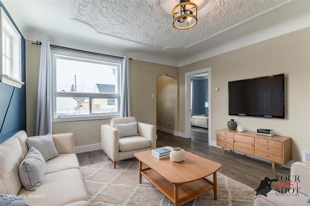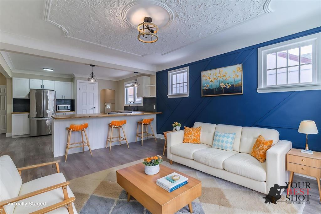 Open house Mar 28 from 12-2pm. Extensively renovated 4 bedroom 2 bathroom home is ideal for maintenance free living for years to come. Laminate floors throughout the entire main floor are beautiful. Large front entry leads into the open concept main floor which is perfect for entertaining or relaxing. Large kitchen features plenty of counter space and newer stainless steel appliances. Living room shows off a beautiful feature wall and has multiple windows that flood the space with natural light. Two spacious bedrooms on the main floor while upstairs features a huge primary bedroom with massive walk in closet. The basement is fully finished with an enormous rec. room, fantastic four piece bathroom and oversized fourth bedroom or den. Parking pad and small fenced yard for low maintenance living. Hi efficiency furnace in 2023, new shingles in 2025. Some photos virtually staged.