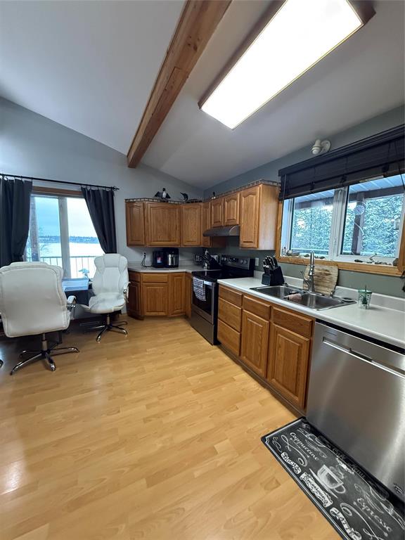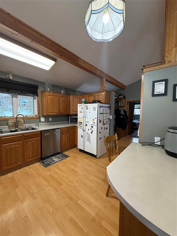 If you want a peaceful piece of paradise this is a must see. Welcome to this spectacular 3 bedroom 2 bathroom home located on beautiful Schist Lake. This home has lots of upgrades and lots to offer! Beautiful lake views, a groomed path from the house to the dock for swimming and boating! Enjoy visiting with friends and family on the beautiful wraparound covered deck! The kitchen includes all appliances and has lots of counter space. The cathedral ceilings and wall of windows facing the lake give you amazing views with natural lighting and it highlights the beautiful beams on the ceiling. This home has lots of storage on both floors. You can host guests, family or rent out the renovated lower level which has its own entrance , kitchen, bathroom, utility room and bedroom. The possibilities are endless! The garage comes with 10 foot ceilings and lots of room for all your lake toys. Put this home on your must see list!
