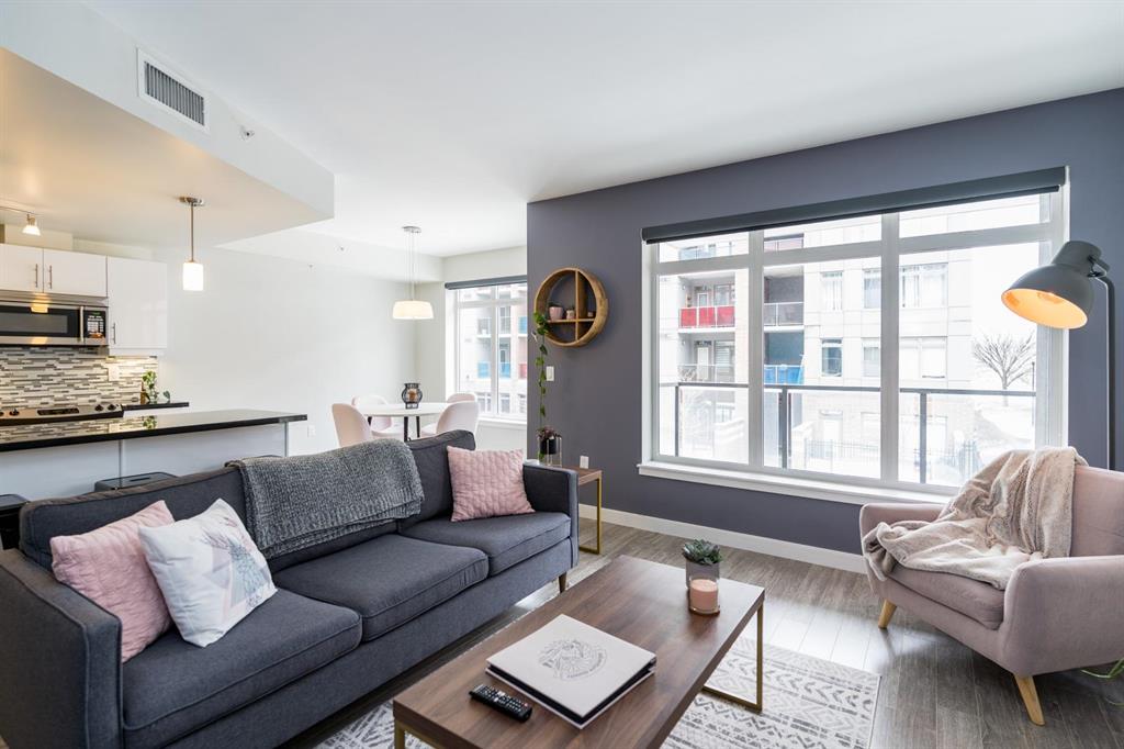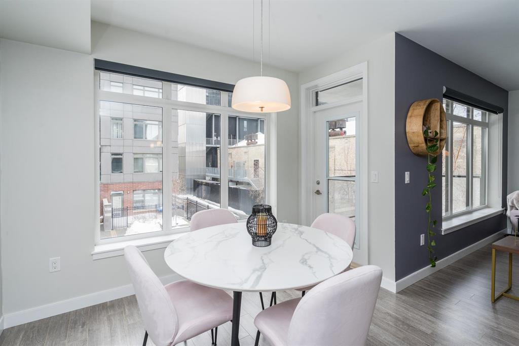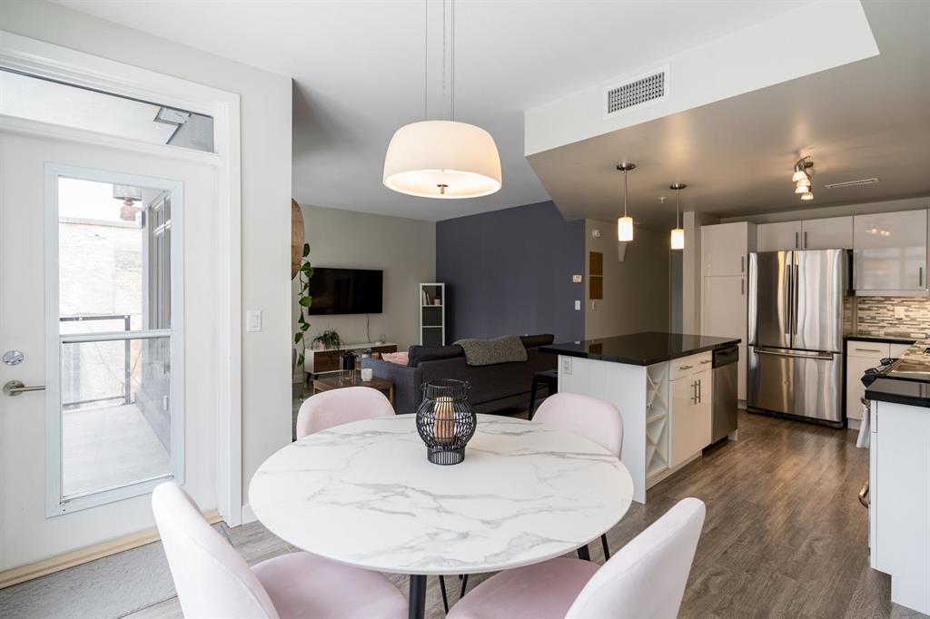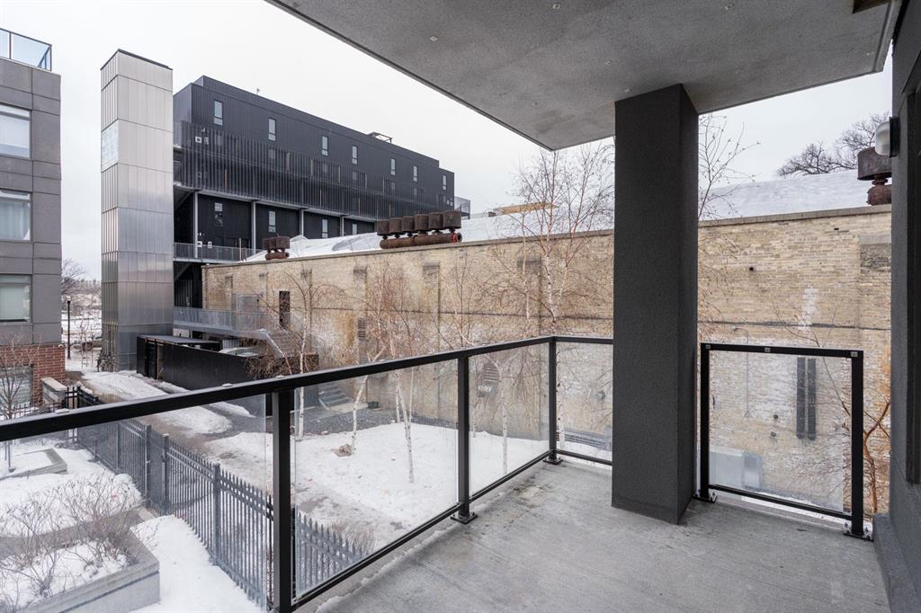 Bright and spacious 2-bedroom condo just steps from Waterfront Drive, set on a quiet courtyard for added privacy. This move-in ready unit features modern finishes and an open-concept layout filled with natural light. The kitchen offers a large island overlooking the living area, along with sleek cabinetry, granite countertops, and a stylish backsplash. Dining and living spaces showcase large windows leading to a private southeast-facing balcony. Ideally positioned as a second-floor corner unit, you’ll enjoy courtyard views with a sense of seclusion. The primary bedroom is generously sized with great closet space, and there’s added convenience with an in-suite laundry room with extra storage. A clean, modern 4-piece bathroom completes the space. Includes parking and an extra storage locker! Building amenities include a common room, lounge with pool table, business centre, fitness centre, rooftop deck, and so much more. Located in the heart of the Exchange District, this pet-friendly condo is a fantastic opportunity for easy urban living.