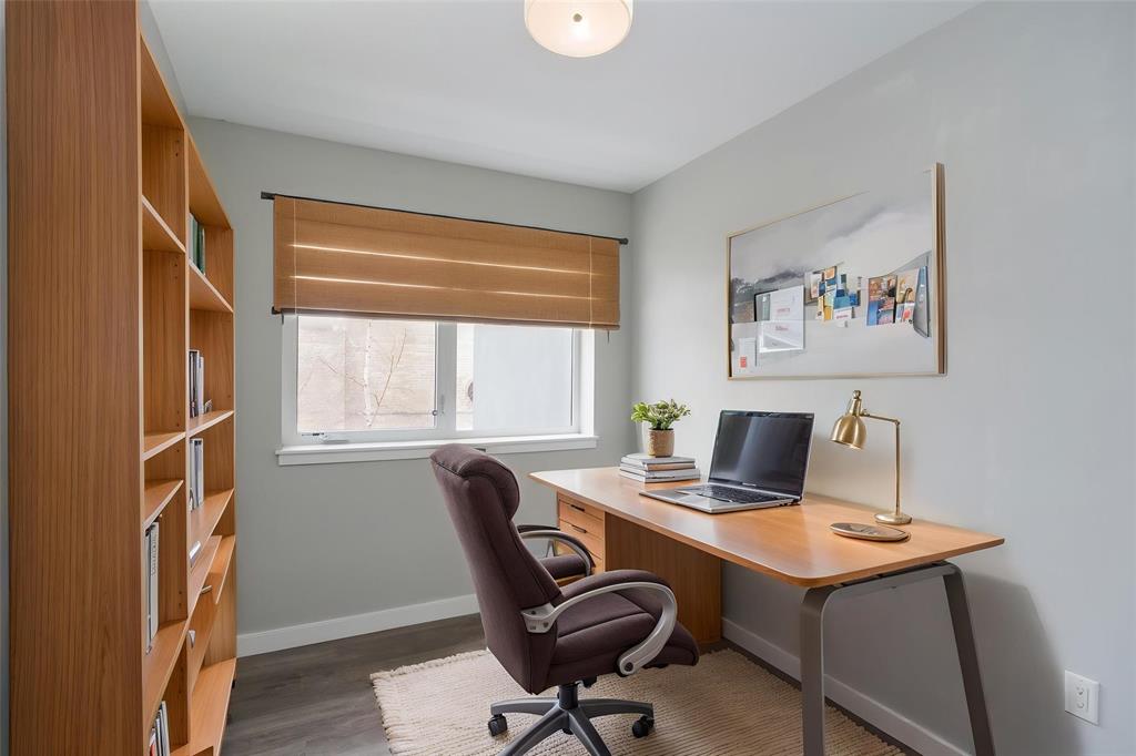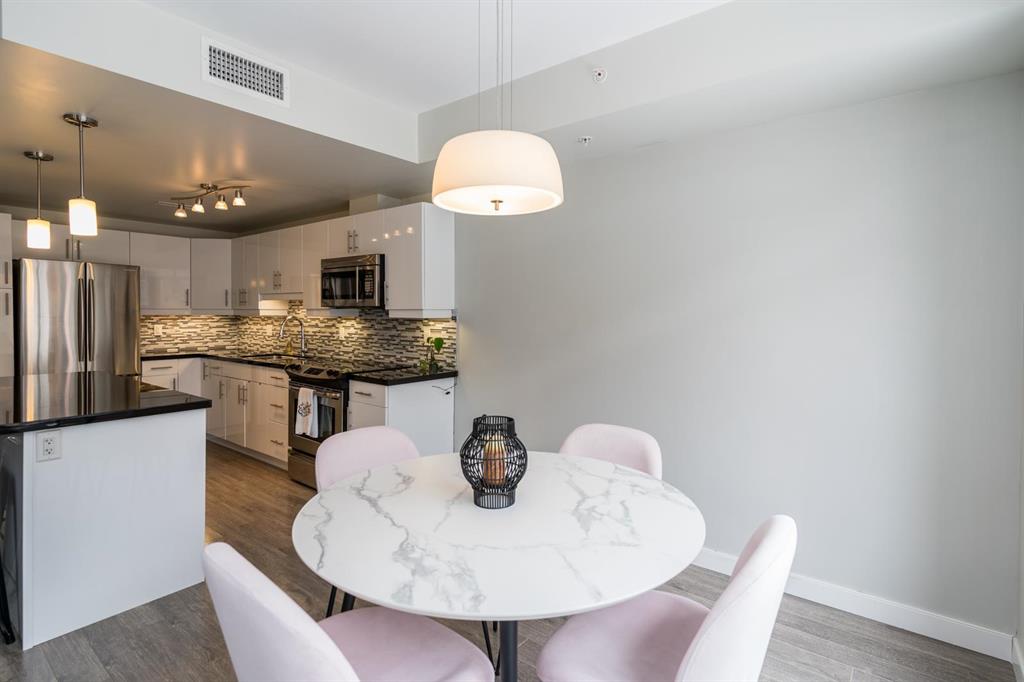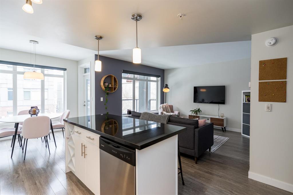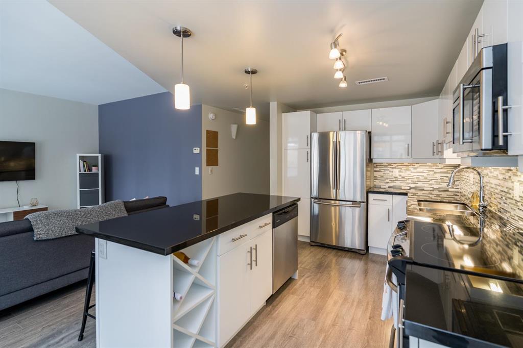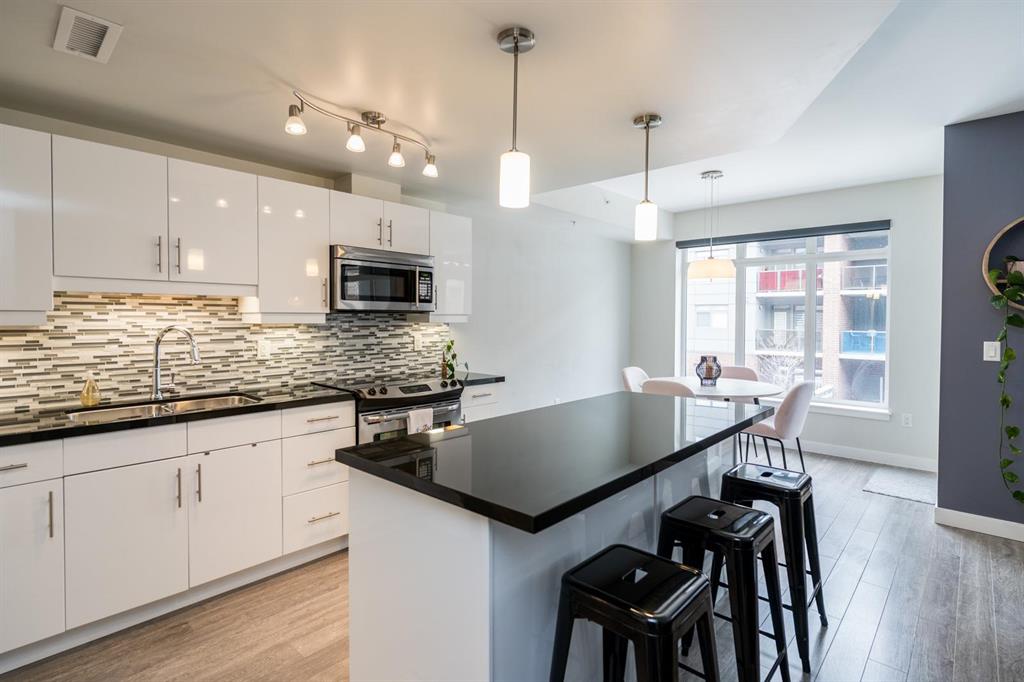 Bright and spacious 2-bedroom condo just steps from Waterfront Drive, set on a quiet courtyard for added privacy. This move-in ready unit features modern finishes and an open-concept layout filled with natural light. The kitchen offers a large island overlooking the living area, along with sleek cabinetry, granite countertops, and a stylish backsplash. Dining and living spaces showcase large windows leading to a private southeast-facing balcony. Ideally positioned as a second-floor corner unit, you’ll enjoy courtyard views with a sense of seclusion. The primary bedroom is generously sized with great closet space, and there’s added convenience with an in-suite laundry room with extra storage. A clean, modern 4-piece bathroom completes the space. Includes parking and an extra storage locker! Building amenities include a common room, lounge with pool table, business centre, fitness centre, rooftop deck, and so much more. Located in the heart of the Exchange District, this pet-friendly condo is a fantastic opportunity for easy urban living.