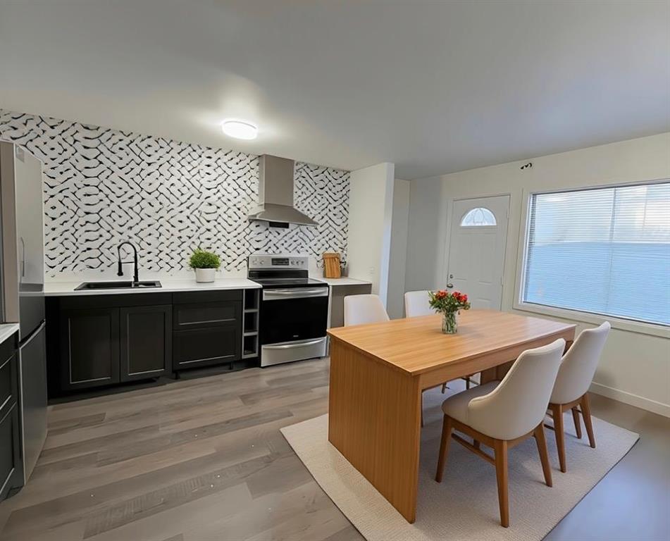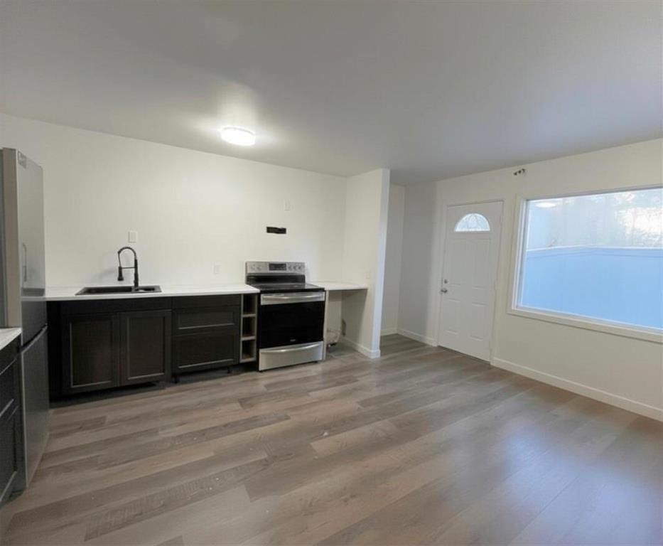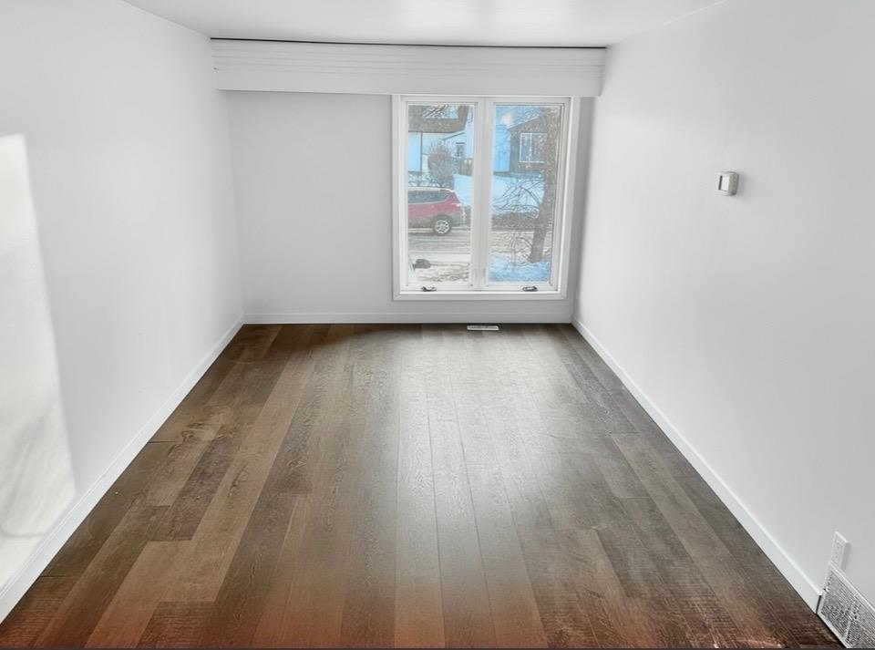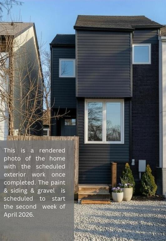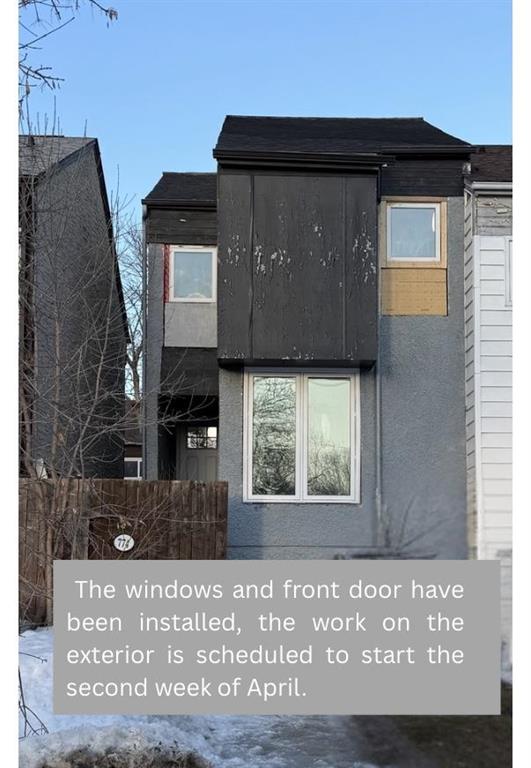 Updated 1059 sq ft, 3 bedroom, 4 level located South Osborne. Walking distance to restaurants, boutique shops, major grocery store, Rapid Transit, & Elementary School! The entry leads to a large bright livingroom with a floor to ceiling picture window. A few steps down is a spacious Eat-in Kitchen newly renovated with black cabinets and marble effect laminate countertops. A large window looks out to the fenced low maintenance backyard with a deck and storage shed. The lower level is off the kitchen and is a great space to add rec room or 4th bedroom. High ceilings in the full basement area also offers a perfect space for home gym equipment! Under the kitchen is 5’5” crawl space for storage. The upper levels have three good sized bedrooms and a full bathroom with updated fixtures. New warm wood tone LVP flooring flows throughout the home. Updates; Kitchen, bathroom, front door, lights, flooring, roof(24), windows. Two parking stalls are located conveniently in front of the home. Not a condo, so no condo fees. Don't miss this one!
