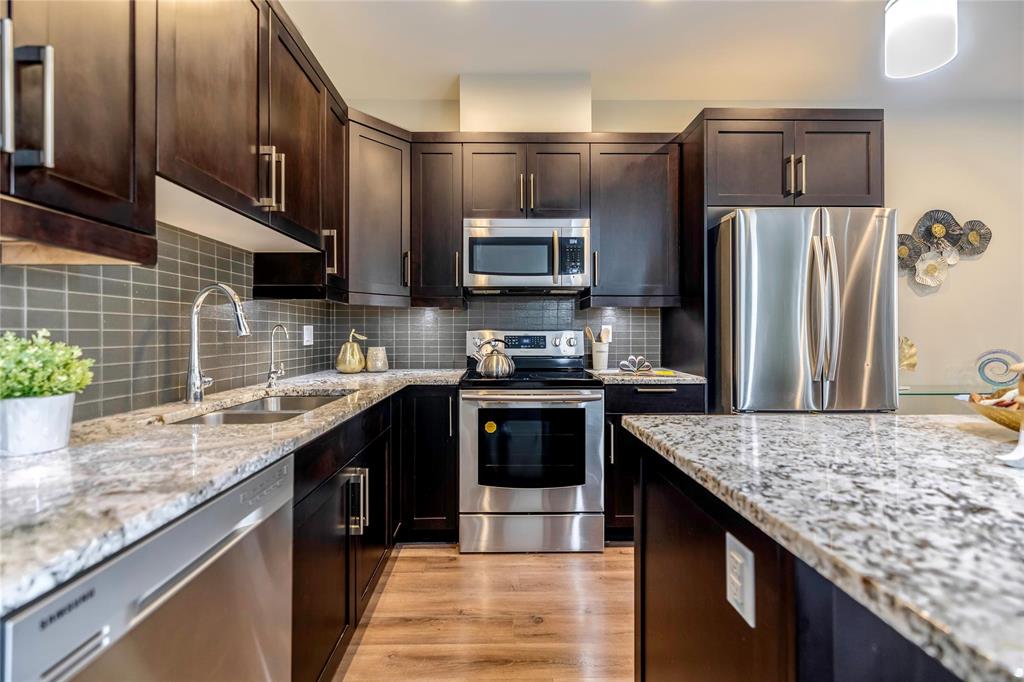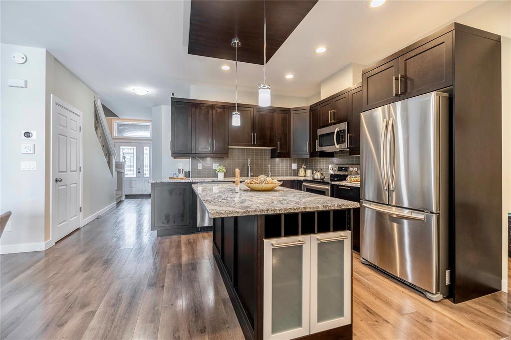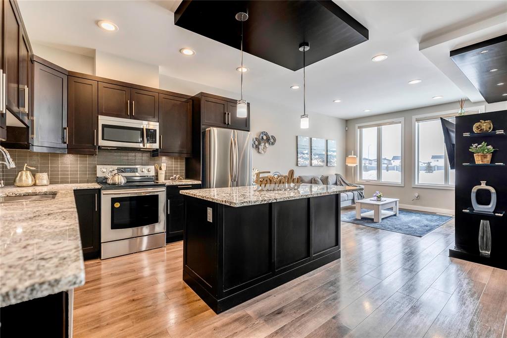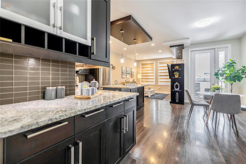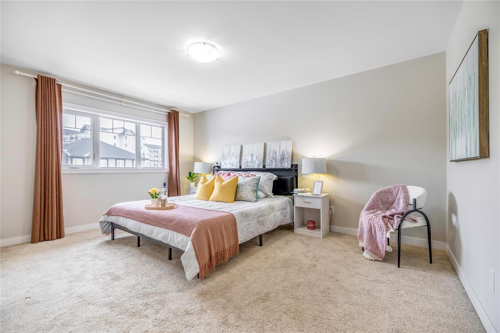 SS now. Offer as received. This gorgeous 2-storey townhouse with walk-out basement and backing onto the lake is truly amazing in the most sought area in Bridgwater. Offering open concept great room with a beautiful kitchen along with plenty of cabinetries, large island, granite countertops, and backsplash. All the stainless steel appliances are included. The family room is spacious in size with a built-in entertainment centre with electric fireplace. Grand windows flood the home with natural light and amazing view of the lake. Three spacious bedrooms with laundry upstairs. Primary bedroom with ensuite bathroom is away from the other two bedrooms which offers you a peaceful privacy. Downstairs the walk-out basement is unfinished and awaits for your future touch with big windows and patio door to the exterior. A must see 5A home, private showing is a phone call away.