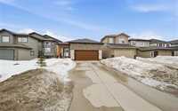 Showings start now. Offers as received. Welcome to this well-maintained former show home, a 1,330 sq. ft. bungalow in the highly sought-after Castlebury Meadows, just steps from the lake, walking paths, playgrounds and Ecole Waterford Springs School. The home features an open-concept main floor with modern laminate flooring, three spacious bedrooms, and a primary suite with walk-in closet and ensuite bath with standing shower. Built with steel beam construction, the open-span basement offers versatile spaces currently arranged as two additional rooms with large windows, ideal for recreation, home office, or guests. Additional highlights include a chef-inspired eat-in kitchen with island and walk-in pantry, 9-foot ceilings, central air, high-efficiency HVAC, stone accents, and a wooden sectional overhead garage door. Outside, enjoy a fully fenced yard with a 14’ x 13’ deck and play structure. Conveniently located within minutes of Shopping Centres, parks, grocery stores, public transit, Hospital and no rear neighbours with added privacy, this home combines style, quality, and a family-friendly location.Don’t miss this rare and highly sought-after opportunity to own a pride-maintained former show home.